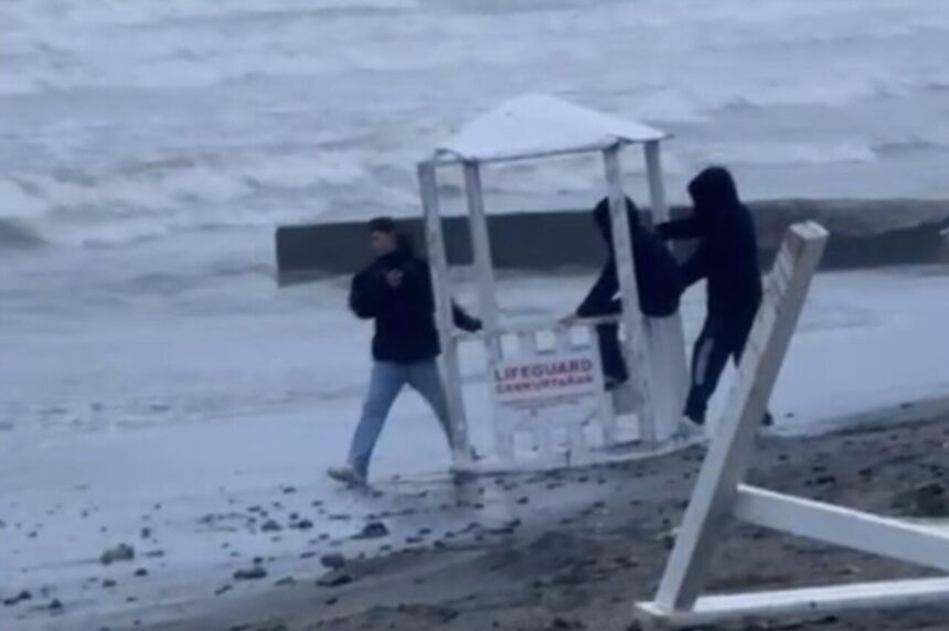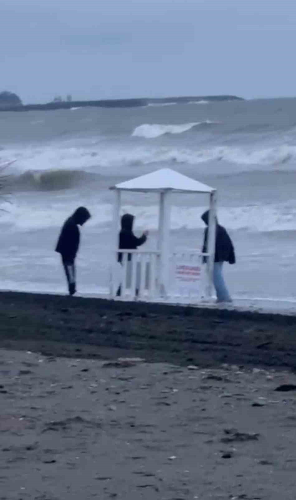 Samsun’un Atakum ilçesinde sahildeki cankurtaran kulübesini denize atmaya çalışan 3 çocuk, vatandaşların ihbarı üzerine sahile gelen polis ekiplerince engellendi.