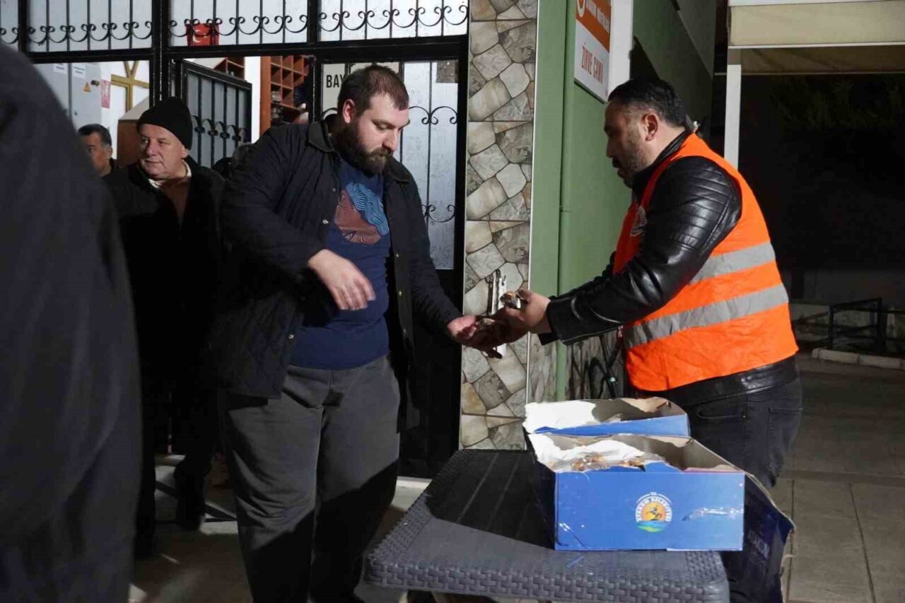 Samsun’un Atakum ilçesinde belediye ekipleri, Miraç Kandili’nde vatandaşlara kandil simidi ile şeker ikram etti.
