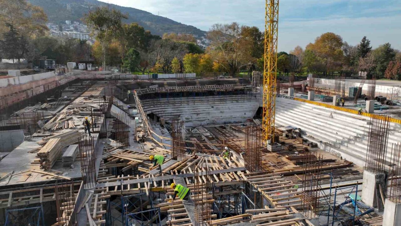 BURSA BÜYÜKŞEHİR BELEDİYESİ TARAFINDAN TEKRAR AYAĞA KALDIRILACAK OLAN KENTİN SİMGE YAPILARINDAN ATATÜRK SPOR SALONU’NDA İNŞAAT TÜM HIZIYLA DEVAM EDİYOR.