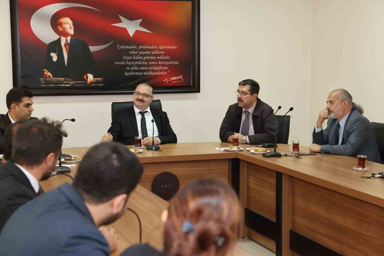 Daha sonra, akademik ve idari personelle bir araya gelen Hacımüftüoğlu, eğitim süreçlerinin verimliliği ve eğitim kalitesinin artırılması üzerine fikir alışverişinde bulundu. Akademik birimlerin gelişiminin üniversitenin genel vizyonuna katkı sağladığını vurgulayan Rektör, şu ifadeleri kullandı: “Atatürk Üniversitesi olarak, eğitim-öğretim faaliyetlerimizin en yüksek kalite standartlarında yürütülmesi bizim önceliğimizdir. Fakültelerimizde ve meslek yüksekokullarımızda yapılan her çalışma, üniversitemizin araştırma odaklı yapısına güç katmakta ve nitelikli insan kaynağının yetişmesine katkı sağlamaktadır. Bu bağlamda, tüm akademik ve idari kadromuzla birlikte çalışmaya devam edeceğiz.”
