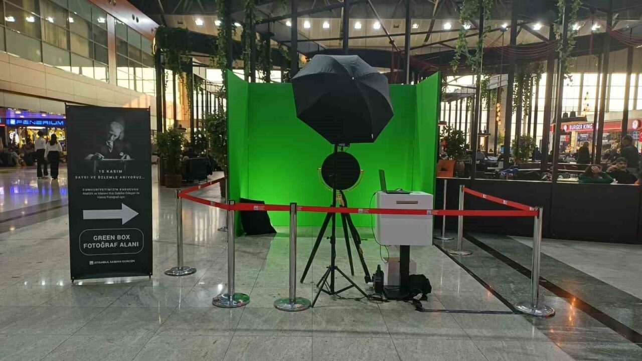 Yolcular için, Atatürk ve manevi kızı Sabiha Gökçen ile birlikte fotoğraf çektirme imkânı sunan özel bir ’greenbox’ alanı kuruldu. Bu alan, toplumsal hafızayı canlandırma ve genç nesillere Atatürk’ün mirasını modern bir şekilde aktarma amacı taşıyordu. Ziyaretçiler, bu teknoloji yardımıyla Atatürk ve Sabiha Gökçen ile aynı karede yer alma fırsatı buldular. Yeşil perde arka planda yapılan çekimlerin ardından dijital olarak işlenen fotoğraflar, ziyaretçilere sunuldu. Bu fotoğraflar, Cumhuriyet’in kurucusuna duyulan saygıyı ve minneti gelecek nesillere aktarmak için kalıcı çerçevelerle hediye edildi. Ayrıca, etkinliğe katılan misafirlere Atatürk’ün ilke ve inkılapları doğrultusunda devam etme kararlılığını simgeleyen özel tasarım masa takvimleri dağıtıldı.