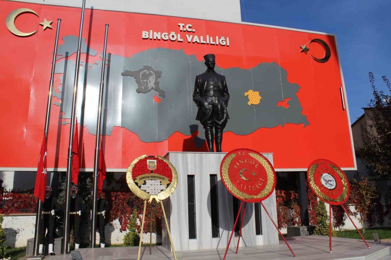 Bingöl Valiliği bahçesinde düzenlenen anma programında, Atatürk Anıtı’na çelenk bırakıldı. Çelenk sunumunu sırasıyla Bingöl Valisi Dr. Ahmet Hamdi Usta, Garnizon Komutanı 70. Mekanize Piyade Tugay Komutanı Tuğgeneral Ahmet Yaşar Dener ve Bingöl Belediye Başkan Vekili Hasan Çeçen gerçekleştirdi.