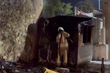 Fatih’te Cami Önündeki Güvenlik Kulübesi Yangınla Söndü, Hamamın Duvarı Zarar Gördü