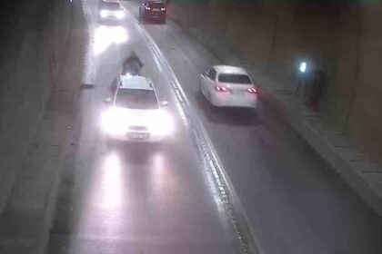 Amasya’daki tünelde duran otomobile motosikletin çarpması kameraya yansıdı.