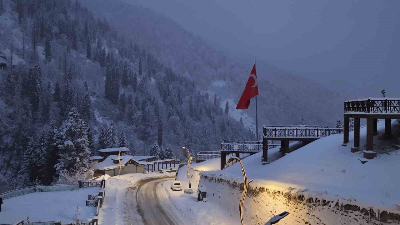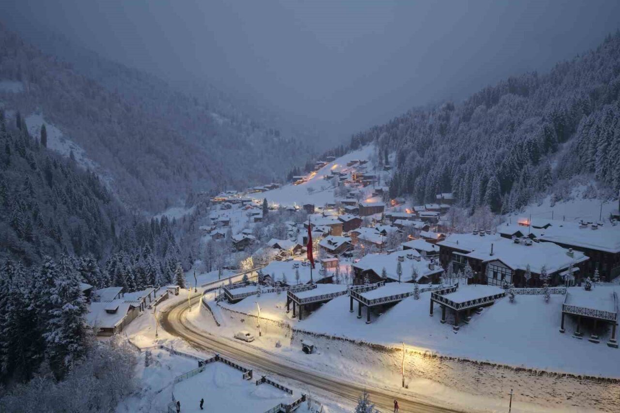 Doğu Karadeniz’in gözde turizm merkezlerinden Ayder Yaylası, kar yağışının etkisi altında bulunuyor.