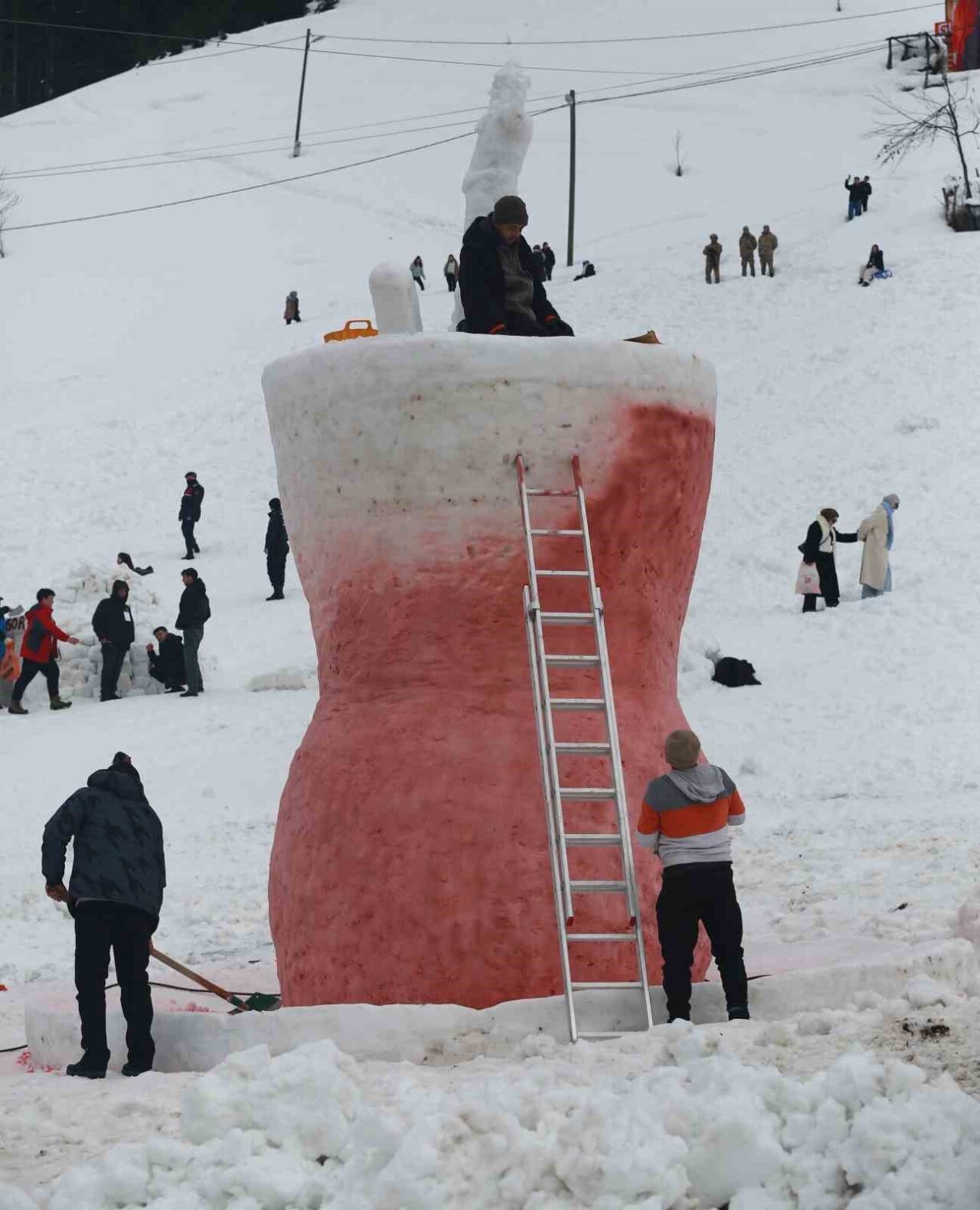 Diğer yandan festival alanında yer alan 4-5 metre yüksekliğindeki kardan çay bardağı da ziyaretçilerin büyük ilgisini çekti.