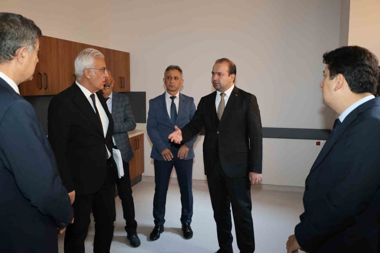 AYDIN İL SAĞLIK MÜDÜRÜ DR. ESER ŞENKUL, İL SAĞLIK MÜDÜRLÜĞÜ HİZMET BAŞKANLARI, HİZMET BAŞKAN YARDIMCILARI VE AYDIN ŞEHİR HASTANESİ KURUCU YÖNETİCİLERİ İLE BİRLİKTE TÜRKİYE’NİN 21’İNCİ ŞEHİR HASTANESİ OLARAK HİZMETE GİRMEYE HAZIRLANAN AYDIN ŞEHİR HASTANESİNİ ZİYARET ETTİ.