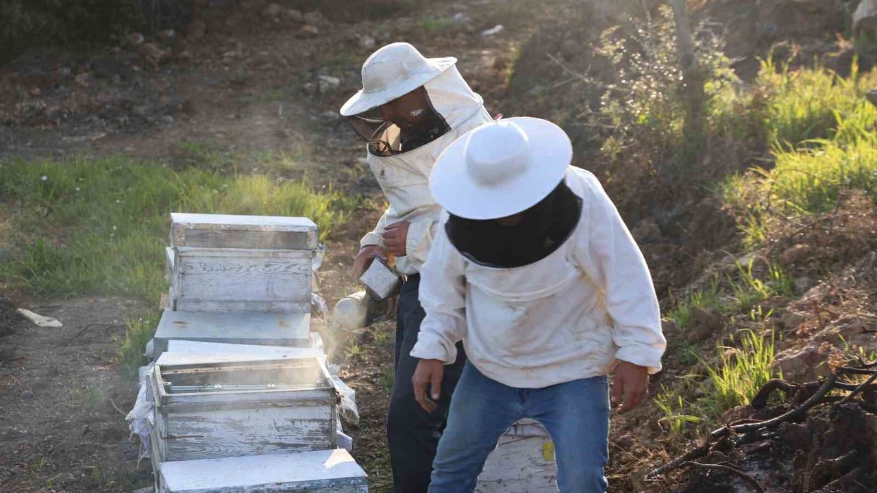 Geçtiğimiz yıllarda yaşanan kuraklık, arıların yeterince bal ve polen toplayamamasına neden olmuştu. Ancak bu yıl, bol yağışlarla birlikte baharın daha güçlü ve verimli başlayacağına inanıyorlar. Koçarlı ilçesine bağlı kırsal Mersinbelen Mahallesi'nde arıcılık yapan Mehmet Özdemir ve Semih Karatosun, havaların ısınmasıyla arıların dışarı çıkıp bal ve polen toplamaya başladığını belirtiyorlar.