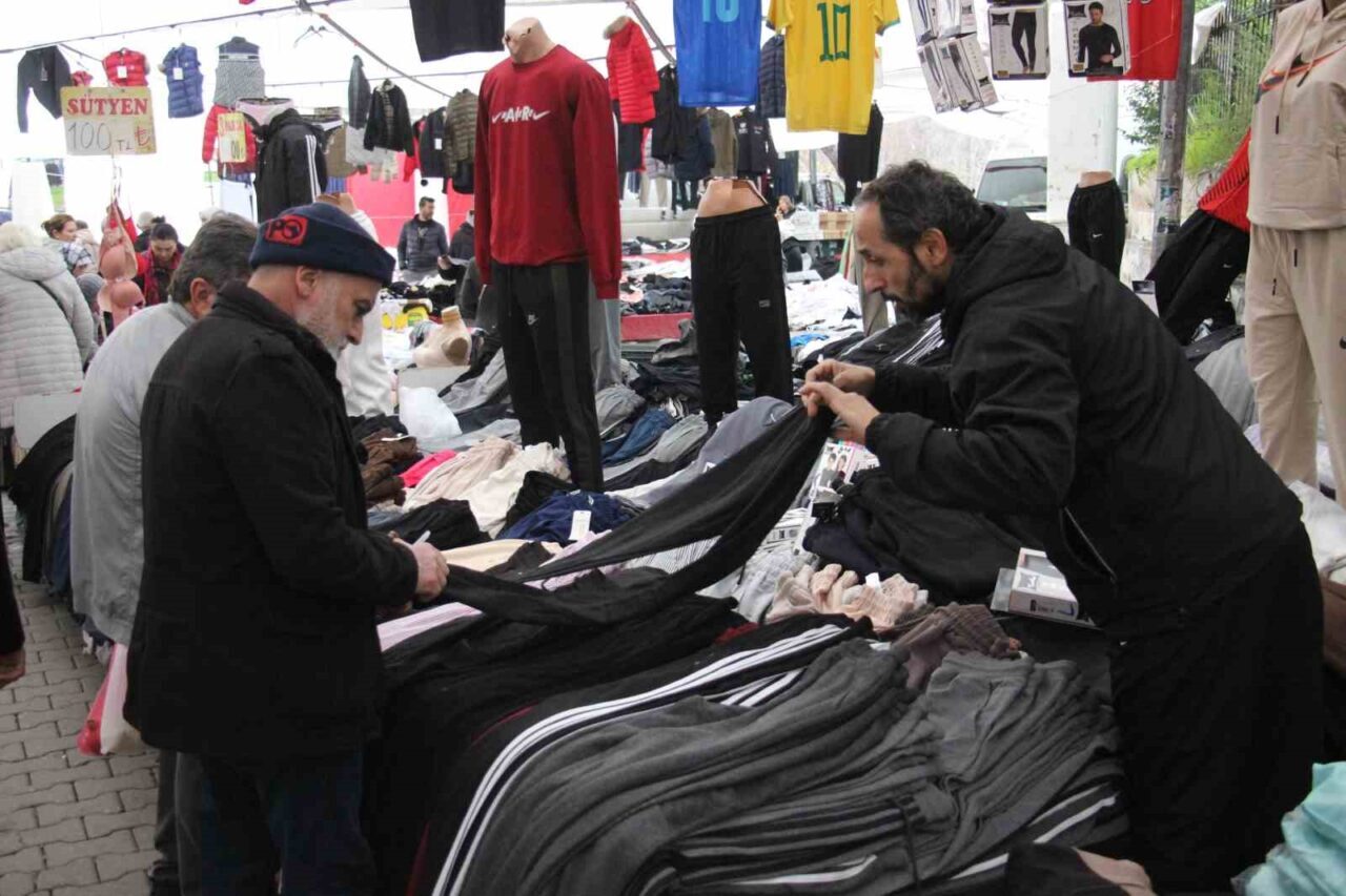 Her hafta erken saatlerden itibaren hareketliliğin yaşandığı Salı Pazarı’nın giyim bölümündeki yoğunluk esnafın yüzünü güldürürken, vatandaşlar da hem uygun fiyat hem de ürün çeşitliliğinden memnun olduklarını aktardı.