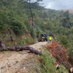 Aydın’ın Bozdoğan ilçesinde yağmur ve fırtına sonrası toprak kayması meydana gelen yol yeniden ulaşıma açıldı