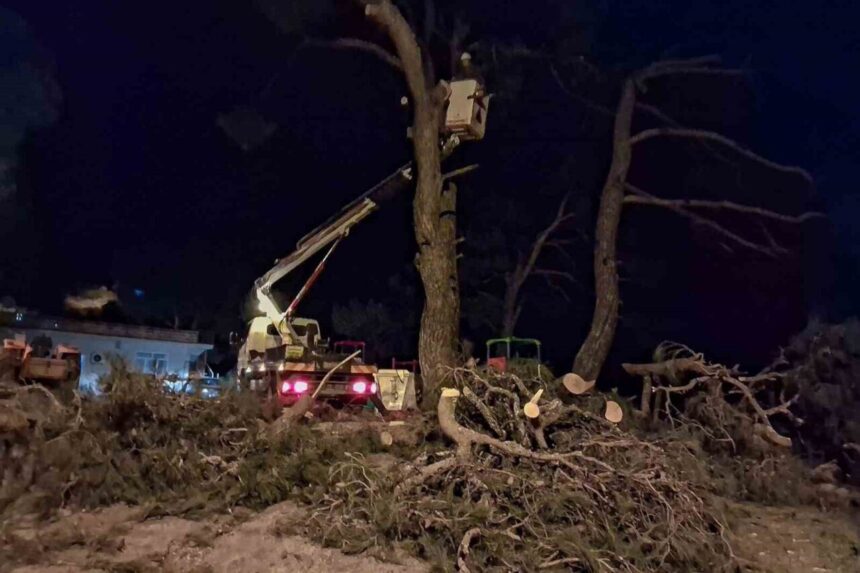 Fırtınanın etkili olduğu saatlerde ilçenin çeşitli noktalarında da benzer ihbarlara anında müdahale edildi. Şahnalı Mahallesi’nde yola devrilen elektrik direkleri ise kısa sürede kaldırılarak yol tekrar ulaşıma açıldı.