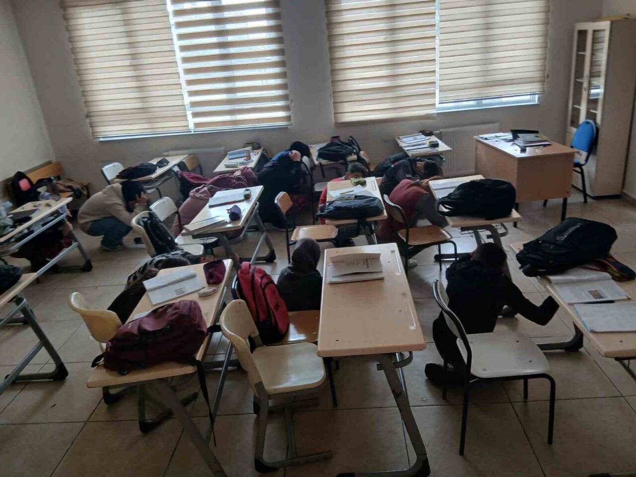 Afet ve acil durum hazırlıkları kapsamında hayata geçirilen tatbikatta, okul idarecileri tarafından görevlendirilen sivil savunma ve afet ekipleri, öğrencilerin, öğretmenlerin ve personelin senaryoya uygun şekilde hızlı ve güvenilir bir tahliye gerçekleştirmelerini sağladı.