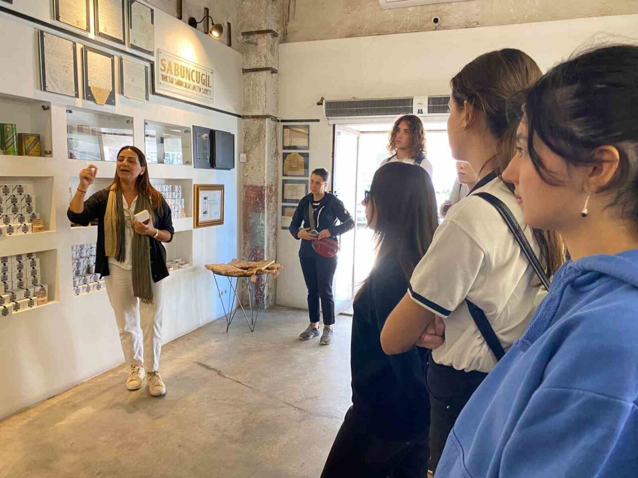 Etkinliğin son kısmı, Ayvalık Belediyesi Zeytin ve Zeytinyağı Galerisi’nde gerçekleşti. Burada Deniz Sabuncugil, geleneksel sabun yapımıyla ilgili teknikleri öğrencilere aktardı. Katılımcılar, kendi sabunlarını yapma şansı bularak pratik bir deneyim yaşadı.