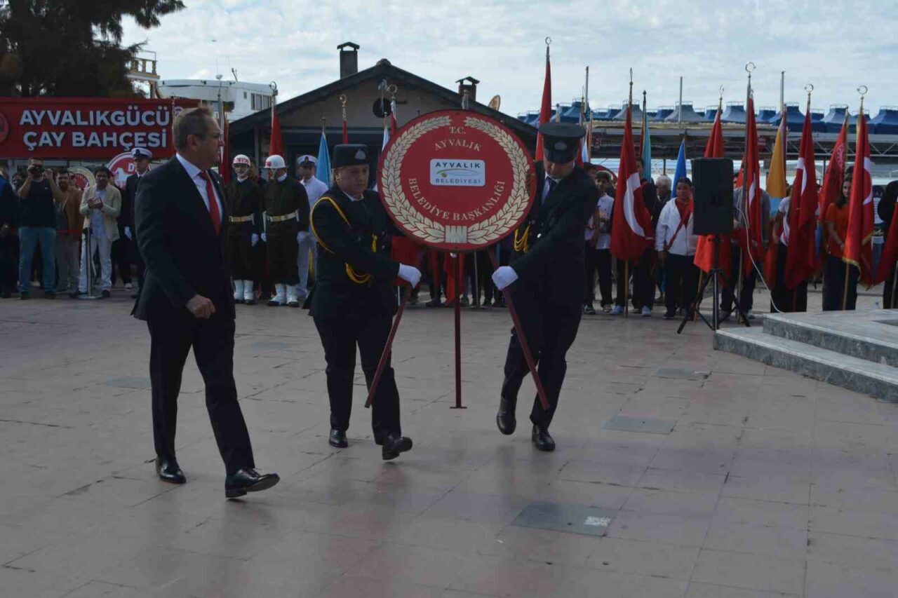 Tören, katılımcıların Atatürk anıtına çiçek bırakmalarıyla başladı. Saygı duruşu ve İstiklal Marşı’nın hep bir ağızdan okunmasıyla devam etti. Ayvalık Kaymakamlığı, Garnizon Komutanlığı ve Ayvalık Belediyesi’nin çelenklerinin sunulması ile etkinlik sona erdi.