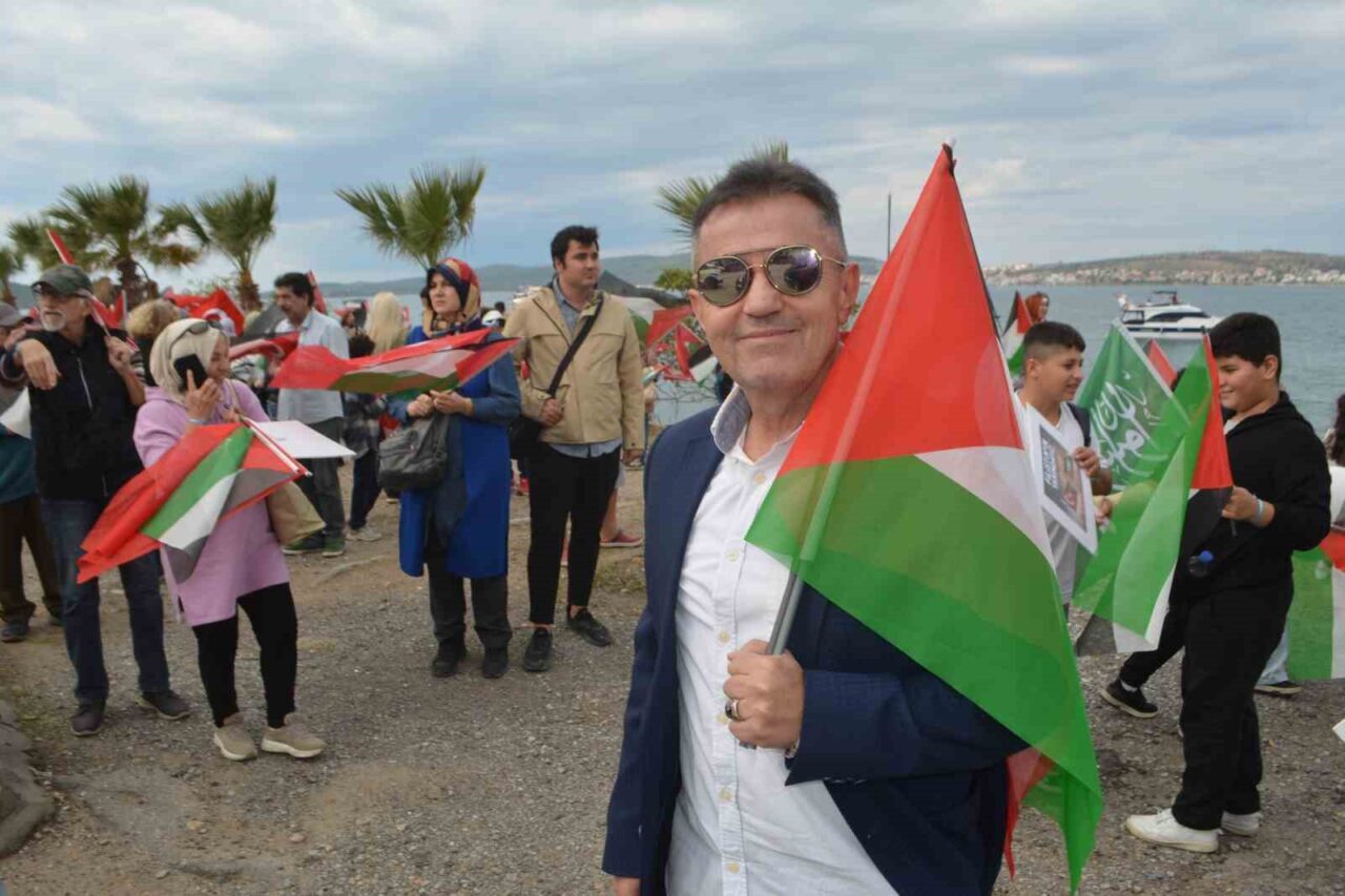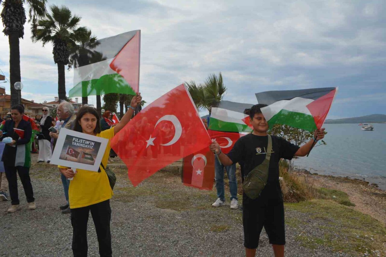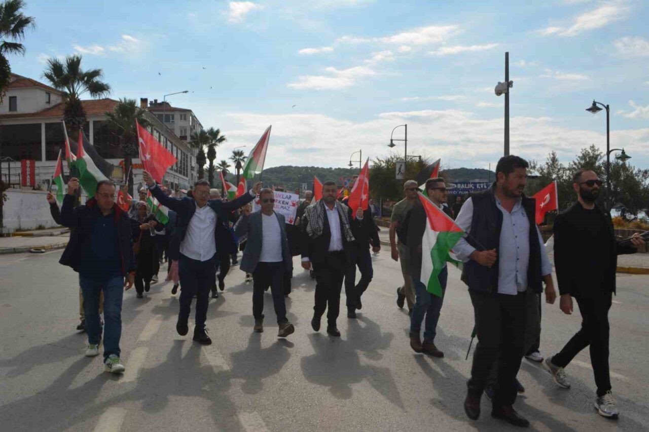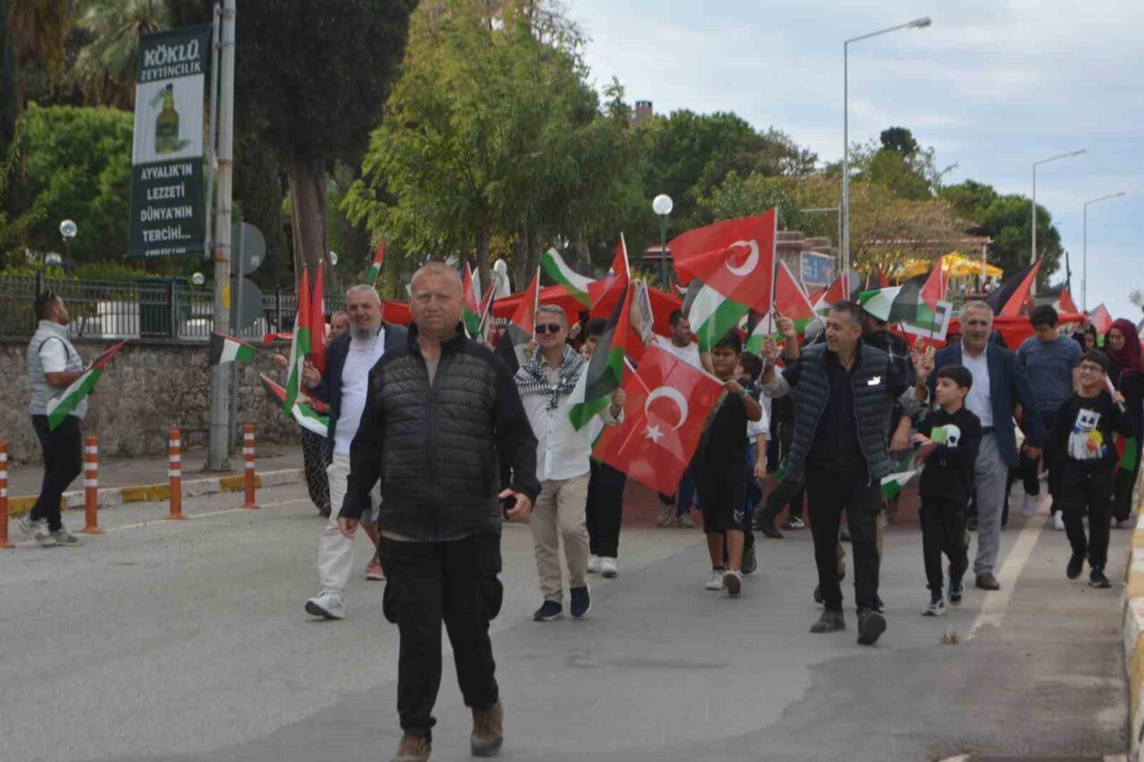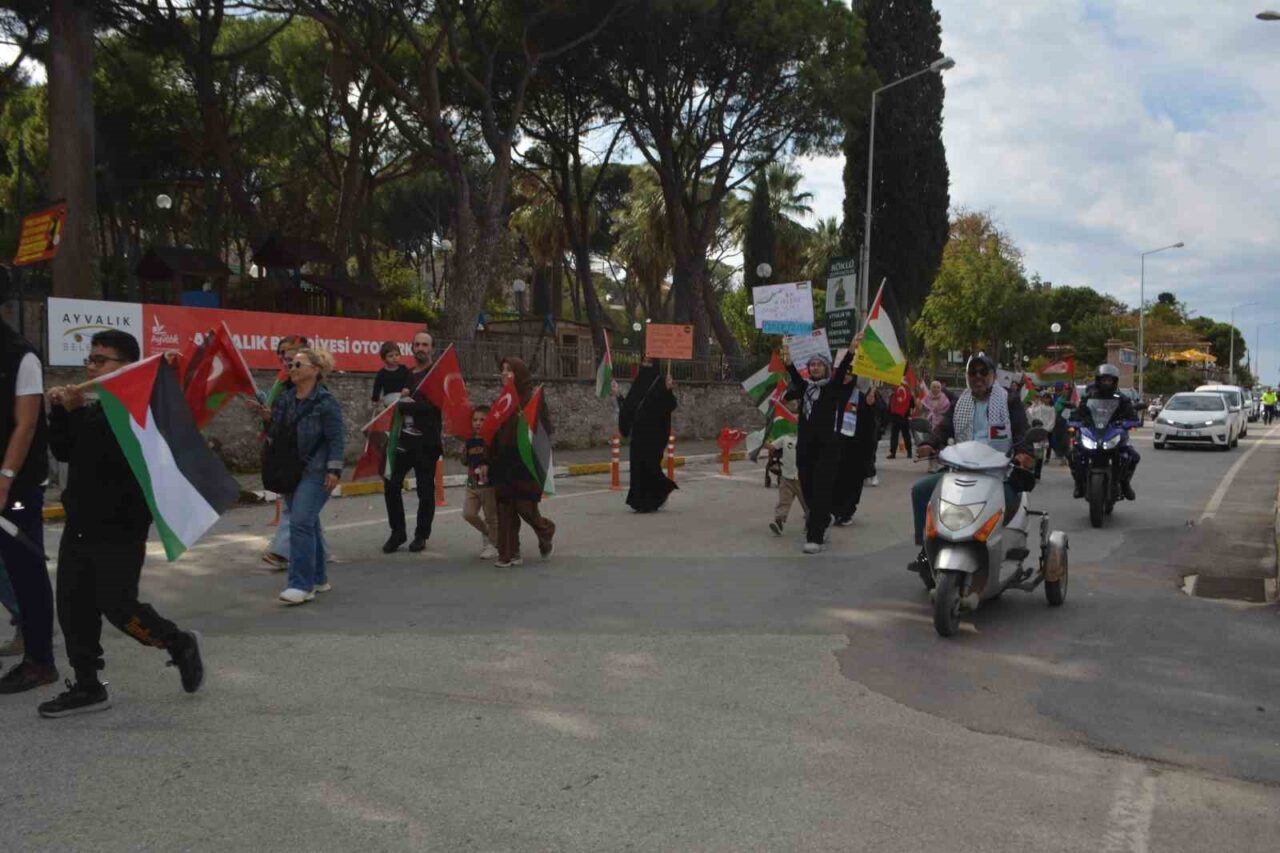 Balıkesir’in Ayvalık ilçesinde Filistin halkına destek vermek amacıyla bir yürüyüş düzenlendi.