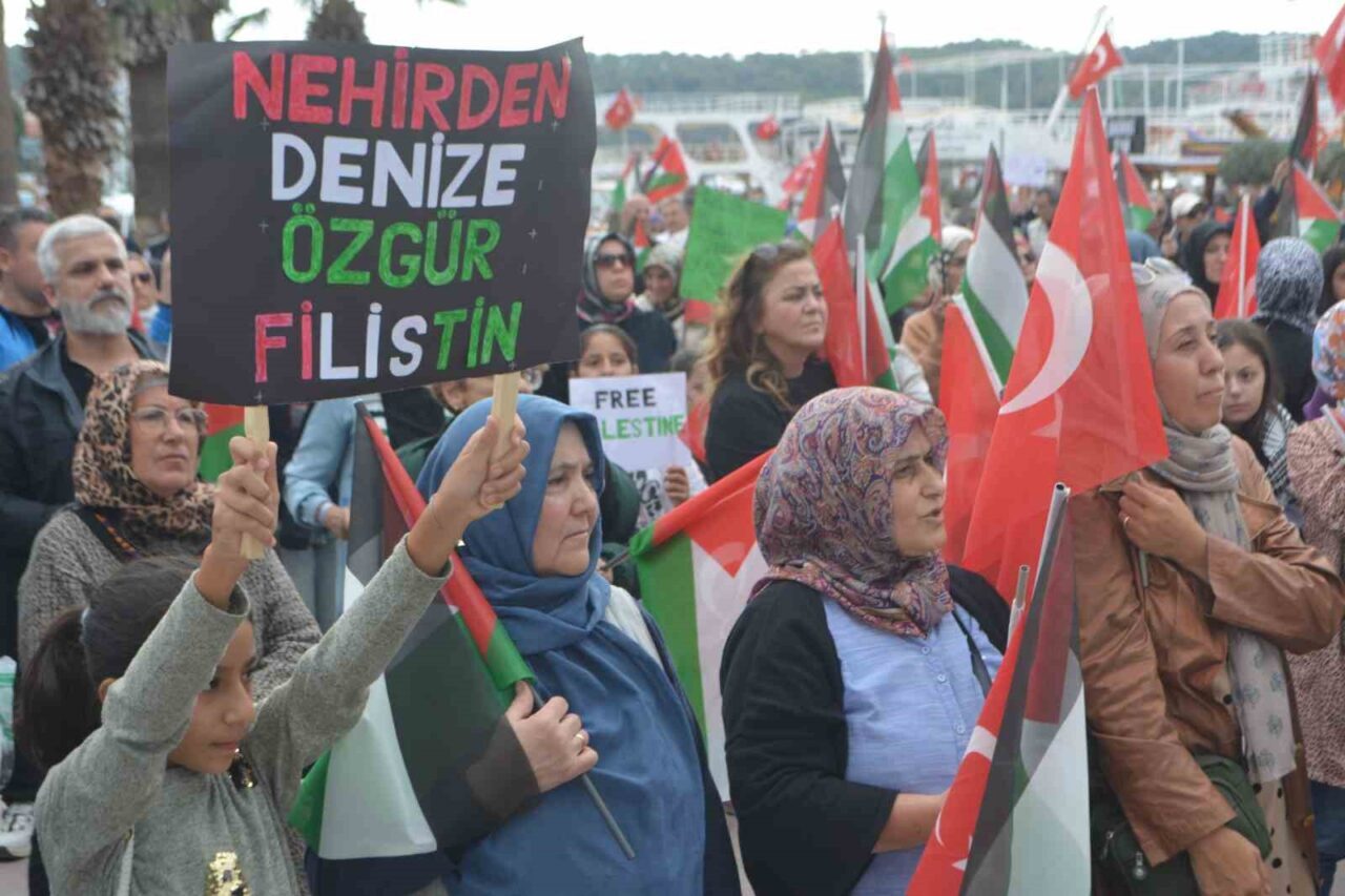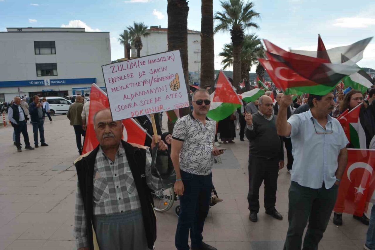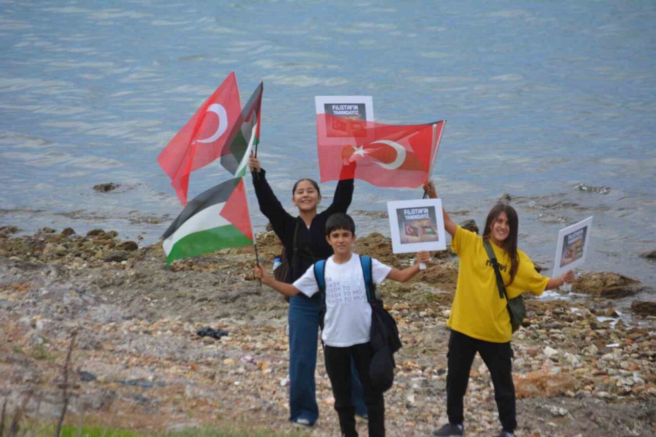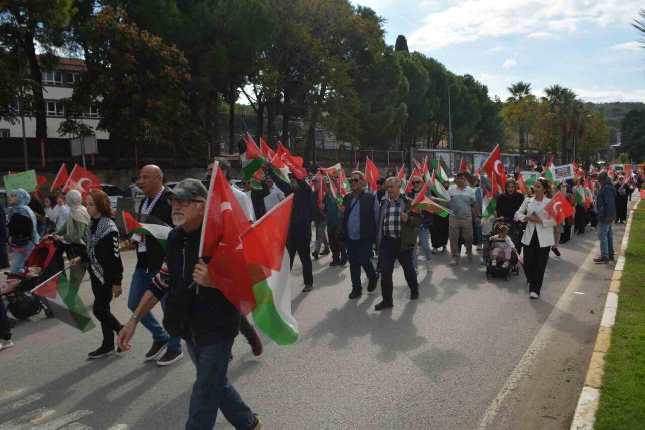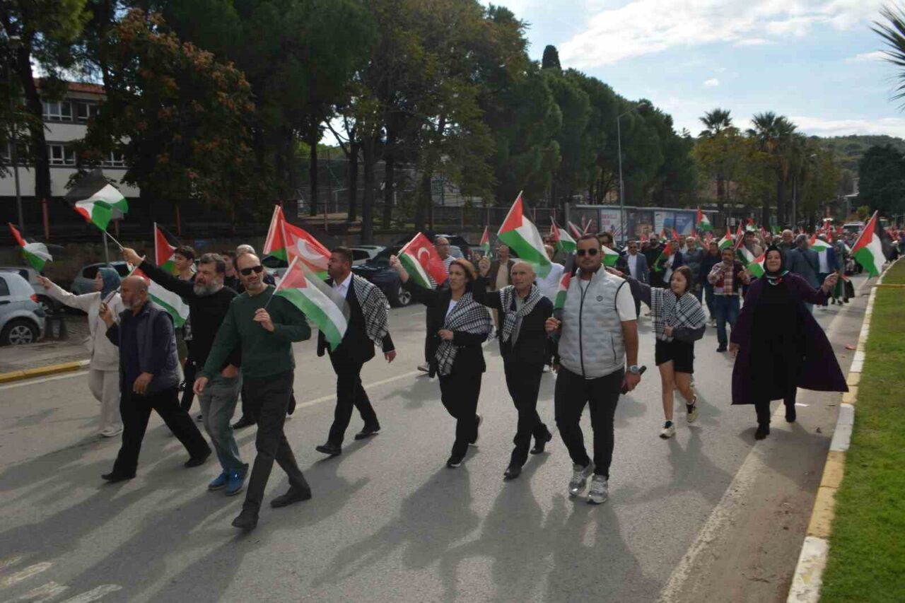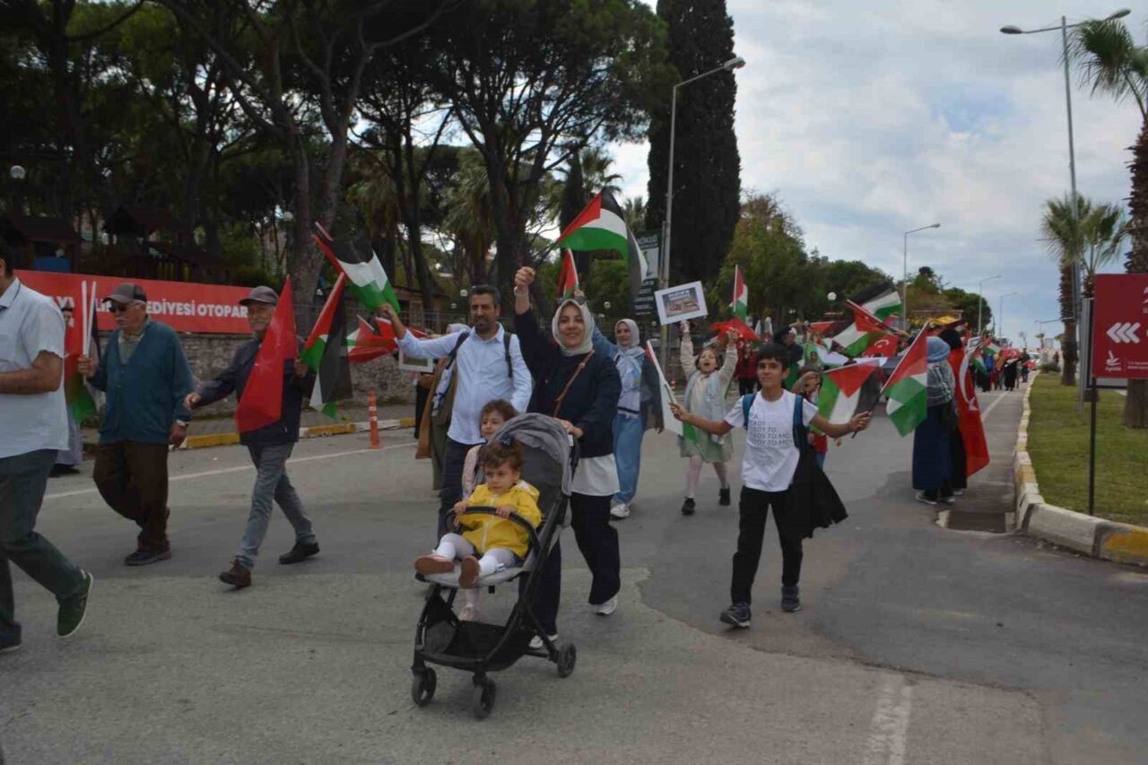 Balıkesir’in Ayvalık ilçesinde Filistin halkına destek vermek amacıyla bir yürüyüş düzenlendi.