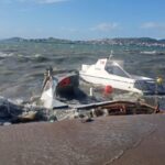 Balıkesir’in Ayvalık ilçesinde şiddetli lodos hayatı denizdeki tekneleri parçaladı
