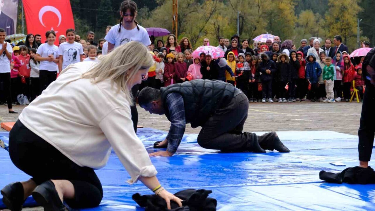 Kastamonu’nun Azdavay ilçesinde gerçekleşen Cumhuriyet Bayramı etkinliklerinde, bir baba kızına olan sevgisiyle herkesi duygulandırdı. Sağanak yağmurun etkisiyle, jimnastik gösterisi yapan öğrenciler zor anlar yaşarken, bir öğrenci mindere düşmekten son anda kurtuldu.