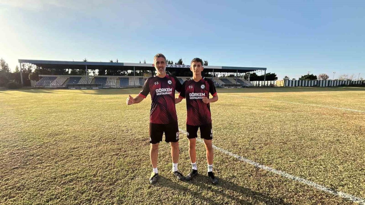 Hatay’da futbola çocuk yaşta adım atan 42 yaşındaki Hayrettin Aykut, hayalini gerçeğe dönüştürerek 16 yaşındaki oğlu Enes Aykut ile aynı takımda futbol oynuyor.