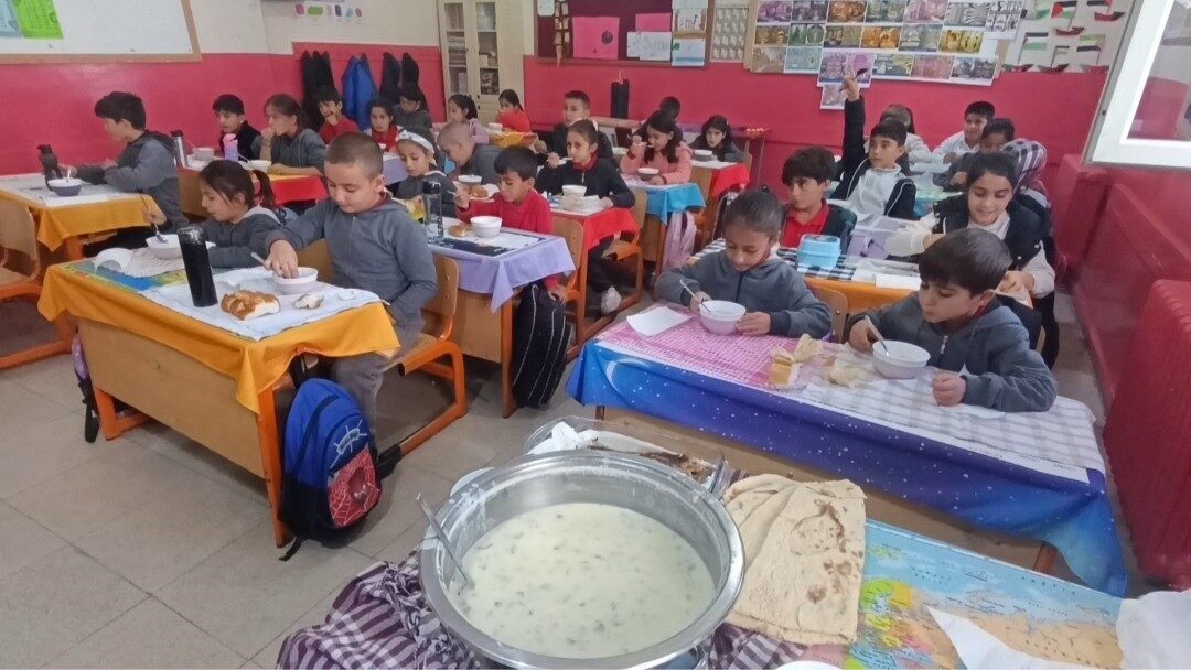 VAN’IN MURADİYE İLÇESİNDE BAŞLATILAN “ÇORBA GÜNÜ” PROJESİYLE ÖĞRENCİLER HER HAFTA FARKLI BİR ÇORBA ÇEŞİDİNİ TADIYOR VE SAĞLIKLI BESLENİYOR.