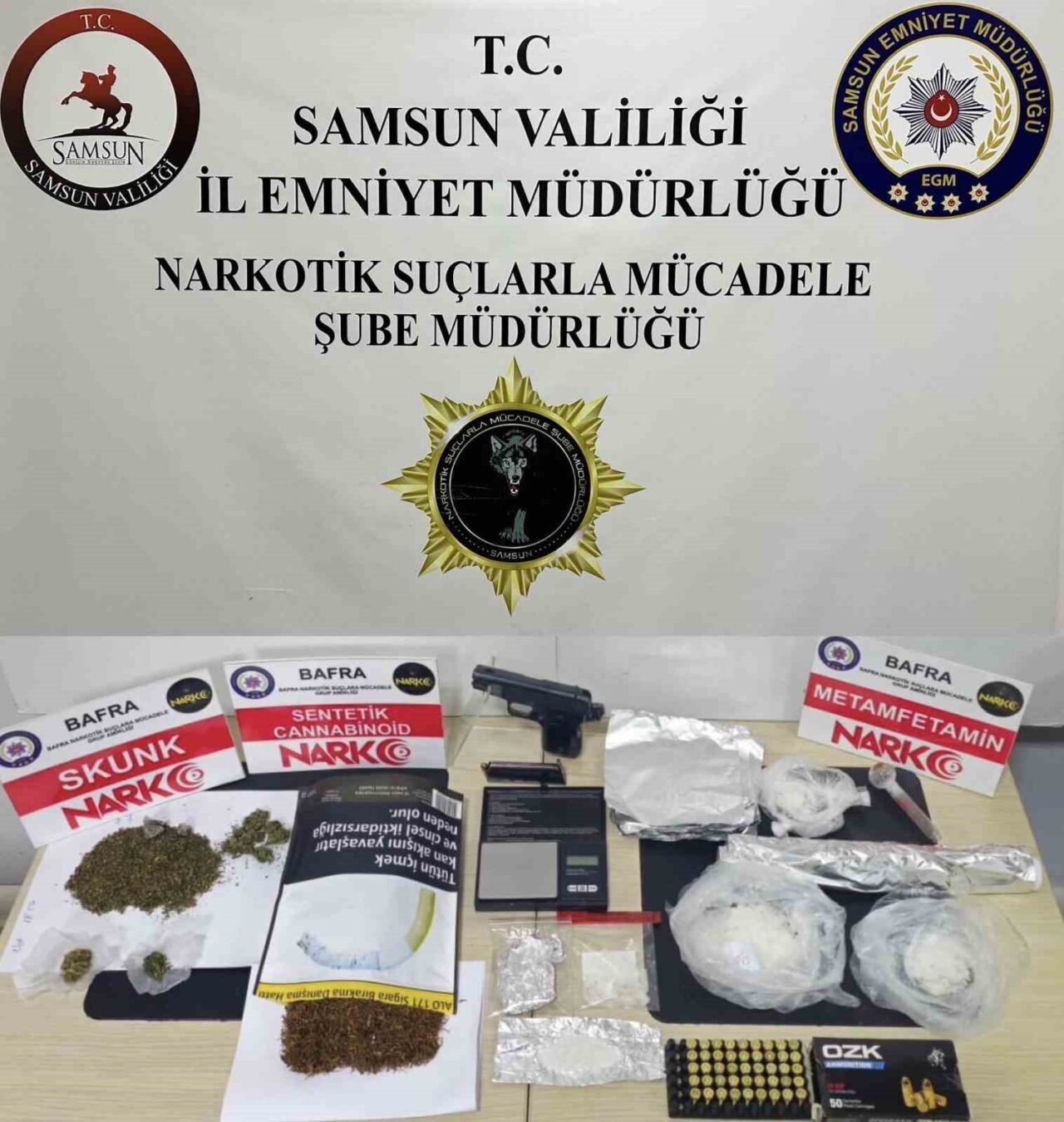 SAMSUN NARKOTİK EKİPLERİ, BAFRA İLÇESİNDE UYUŞTURUCU TİCARETİNİN ÖNLENMESİNE YÖNELİK GERÇEKLEŞTİRDİĞİ İKİ AYRI OPERASYONDA UYUŞTURUCU MADDE VE SİLAH ELE GEÇİRİRKEN, 3 ŞÜPHELİYİ GÖZALTINA ALDI.