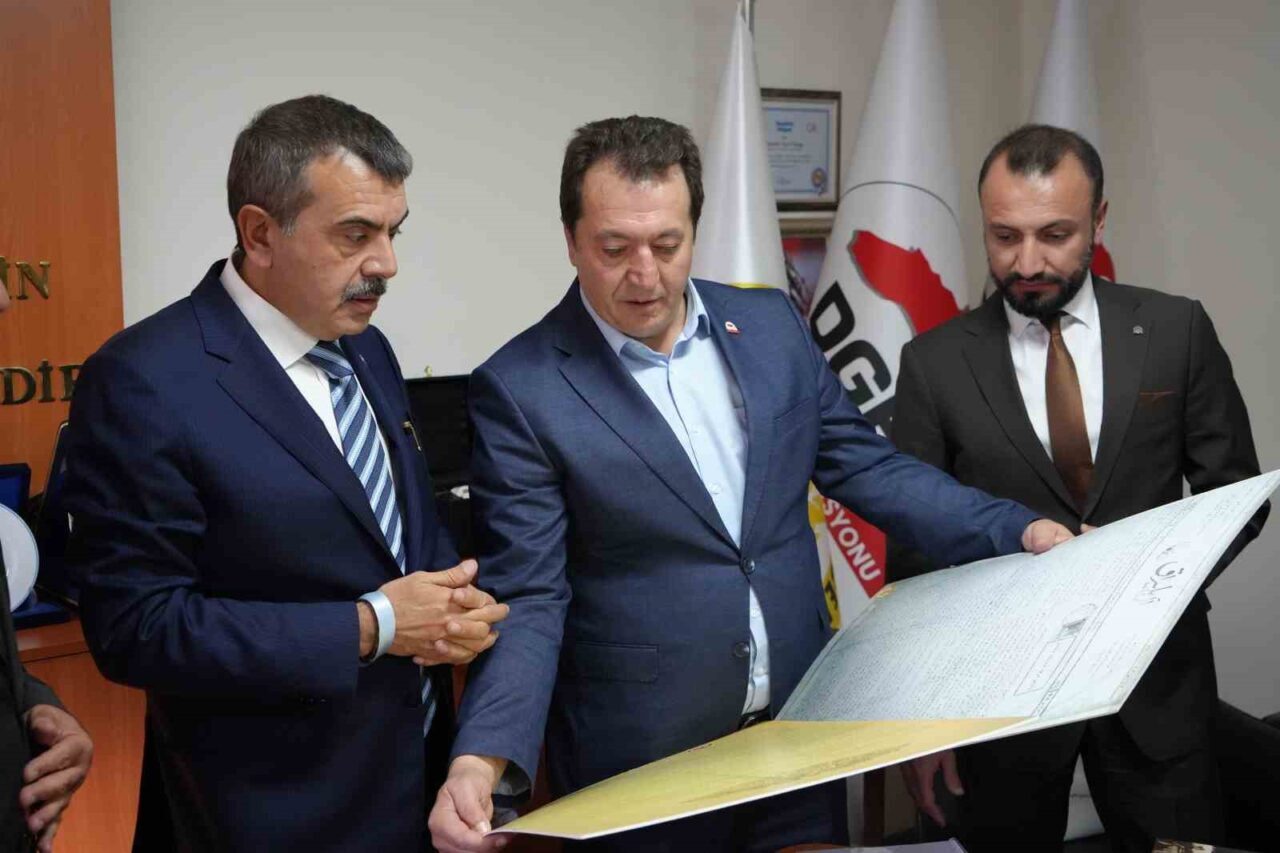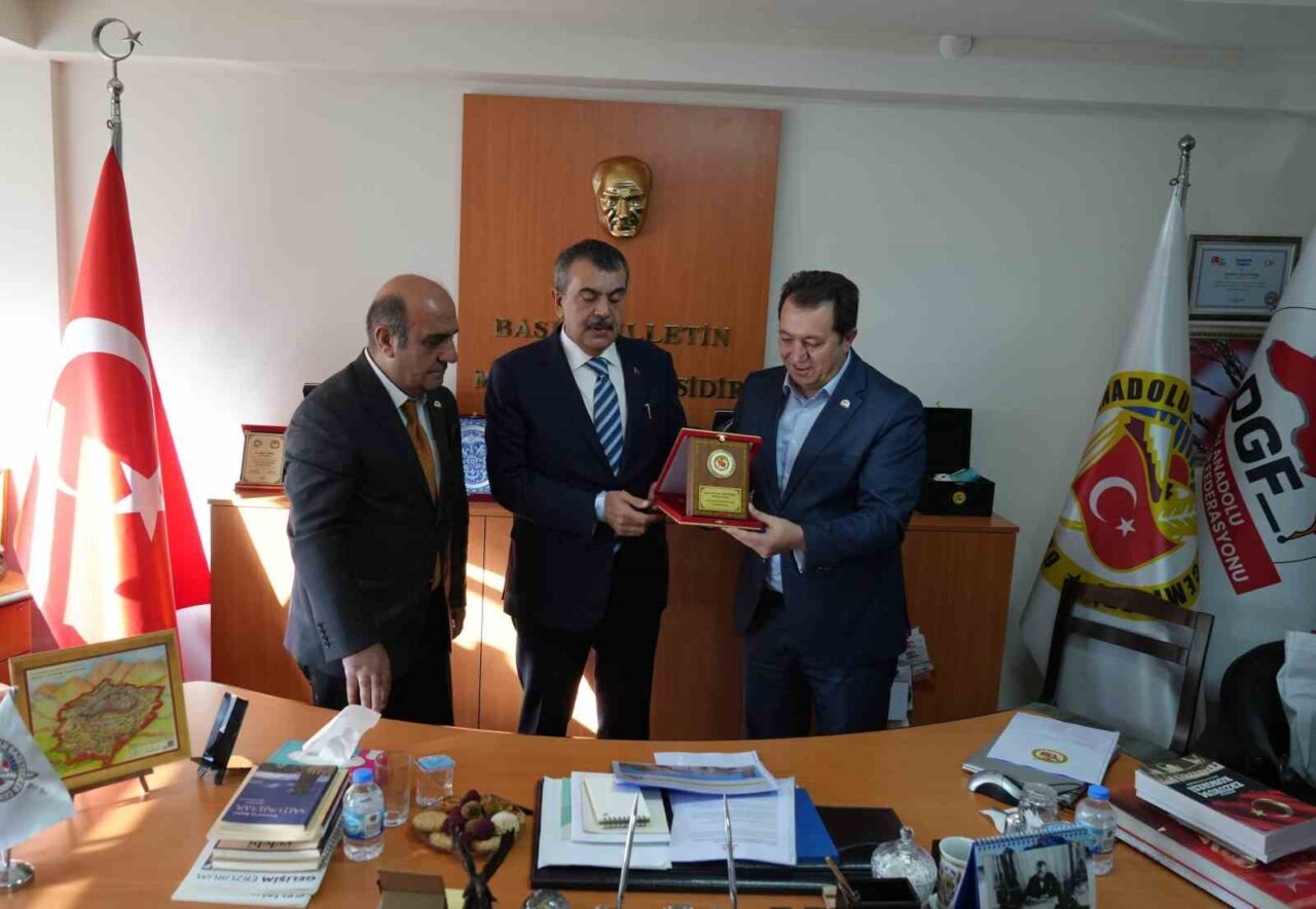 Ziyaretin sonunda DAGC Başkanı Türkez ve DGF Başkanı Tarakçıoğlu, Bakan Tekin’e bir plaket takdim ederek bu anlamlı ziyareti ölümsüzleştirdiler.