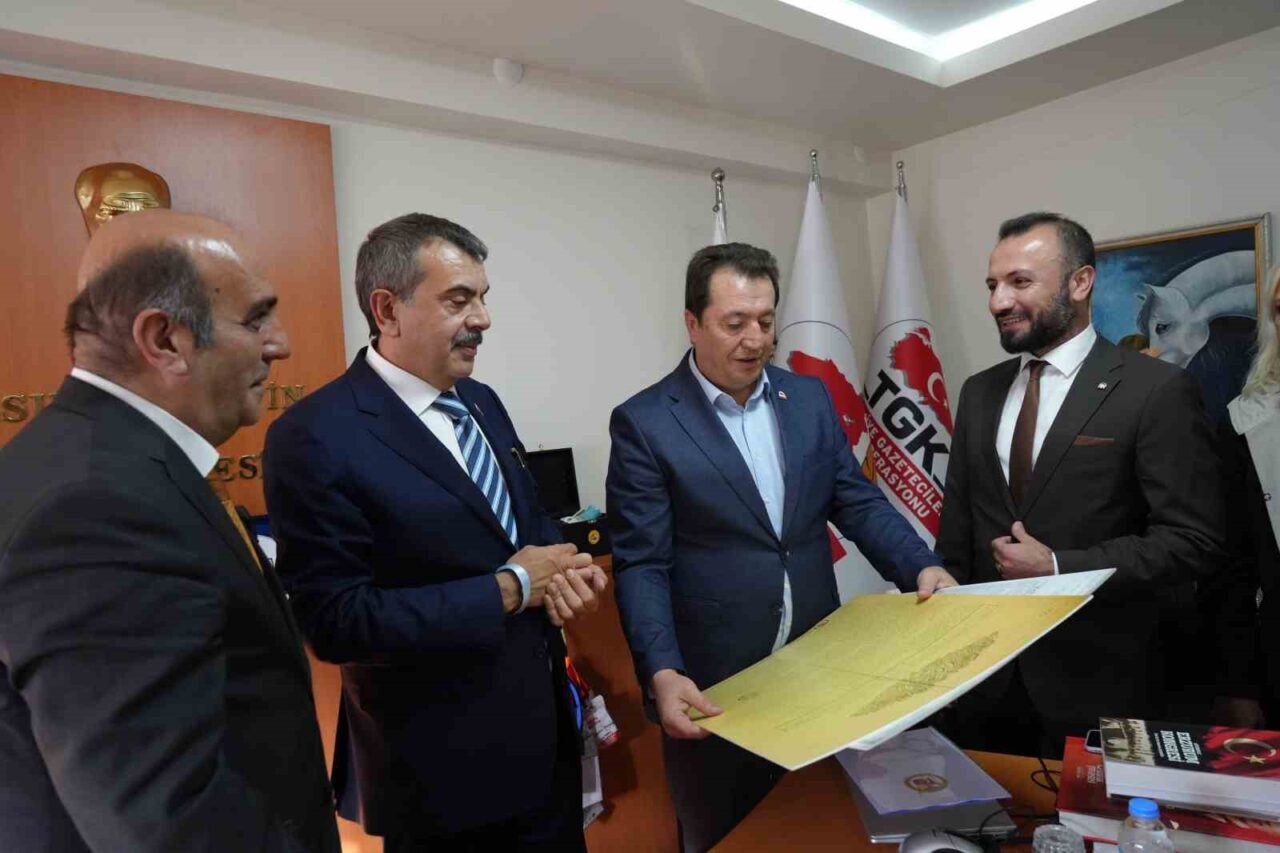 Milli Eğitim Bakanı Yusuf Tekin, Erzurum programı vasitasıyla, Doğu Anadolu Gazeteciler Cemiyeti (DAGC) ve Doğu Anadolu Gazeteciler Federasyonu’nu (DGF) ziyaret etti. Ziyarette, Erzurum Valisi Mustafa Çiftçi, Büyükşehir Belediye Başkan Vekili Mehmet Akarsu ve birçok yerel basın mensubu da yer aldı. DAGC Başkanı Türkez, Erzurum’un köklü basın geleneğini hatırlatarak, 1867 yılında Anadolu’da yayınlanan ilk Türkçe gazete Envar-ı Şarkiyye ile başlayan süreç üzerine bilgi verdi. Ayrıca, bölgedeki basın sorunlarına dair bir rapor sundu.