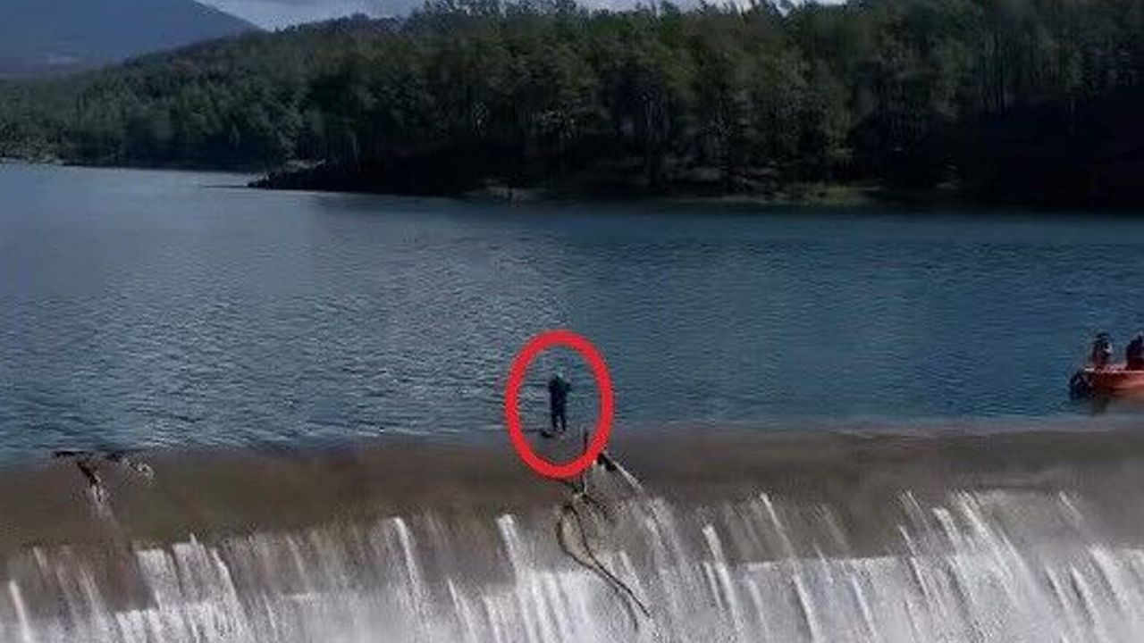 Kumluca ilçesine bağlı Çayiçi Mahallesi sınırları içinde bulunan Alakır Barajı'nda alabalık üreten Nuri Yurtseven, dolu savakta takılan çalı ve ağaçları önce tekne ile ardından yürüyerek gidip temizledi. Suyun döküldüğü alanda temizlik yapan Yurtseven'i görenlerin yüreği ağzına geldi. Vatandaşlar o anları cep telefonlarıyla görüntüledi.
