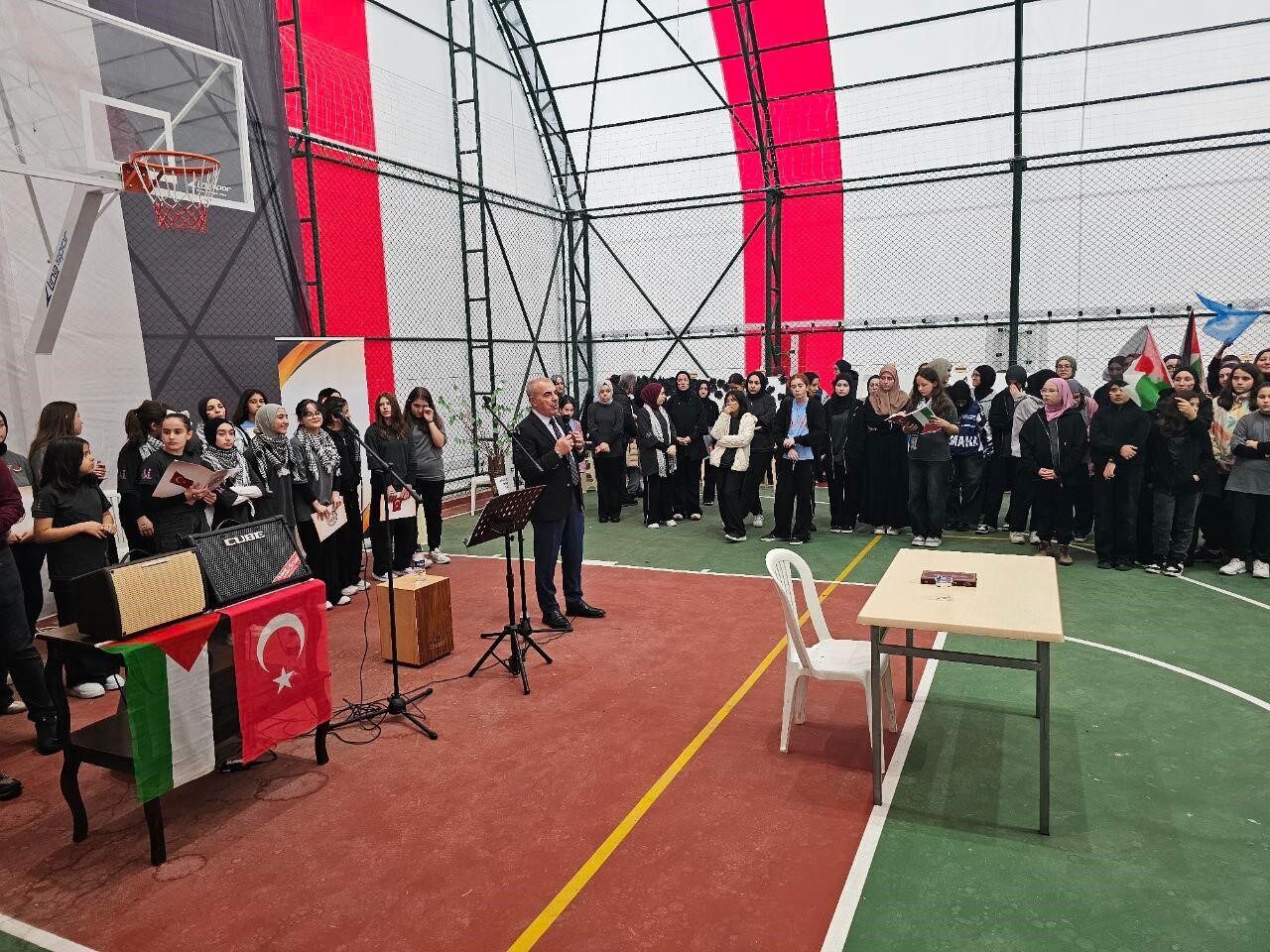 Müdür Demir, Filistin konusunun tüm insanlık için ortak bir mesele olduğunu ifade ederek bu organizasyonda emeği geçen öğretmenler, öğrenciler ve diğer katılımcılara şükranlarını sundu. Program boyunca öğrencilerin hazırladığı Filistin ve Gazze temalı resim sergisi büyük ilgi gördü. Sergideki eserler, öğrencilerin duyarlılığını, vicdani farkındalığını ve barış konusundaki umutlarını yansıttı.
