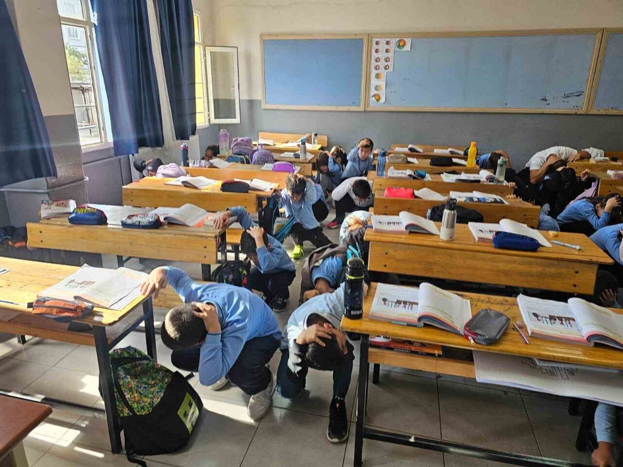 Tatbikat, öğrencilerin deprem anındaki doğru davranış biçimlerini öğrenmelerini sağlayan “Çök-Kapan-Tutun” uygulaması ile başladı. Öğrenciler, öğretmenlerinin liderliğinde güvenli bir şekilde okul binalarını tahliye etti.