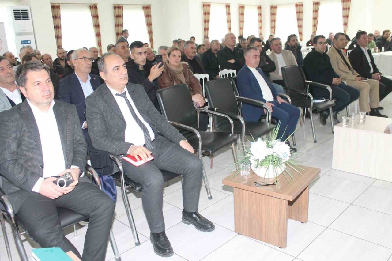 Balıkesir Tarım ve Orman İl Müdürü Dr. Hüseyin Düzgün, il genelindeki projeler ve çalışmalar hakkında özet bilgiler verdi. Düzgün, ülkemizde tarımsal üretim planına iki yıl önce geçildiğini, dünyada iklim değişikliği ile karşı karşıya kalındığını belirtti. Su odaklı bir üretim planının oluşturulduğunu ifade eden Düzgün, “İkinci ekim için Şubat ayı ortalarında yapılacak kuraklık toplantısında karar vereceğiz, o güne kadar yağışlar bunu belirleyecek. Üretim planlaması kapsamında gübrede yüzde 100, mazotta ise yüzde 50 destek ödemesi sağlandı. Şu ana kadar ilimiz genelinde 44 bin çiftçimize iki milyar lira destek verdik. Ancak sizlerden ürünlerinize tarım sigortası yaptırmanızı talep ediyoruz. Ayrıca, TKDK başvurularına talep oldukça az; 44 bin çiftçimizin olduğu ilimizde sadece 30 başvuru yapılmış. Bu destekleme fonlarından faydalanalım” şeklinde konuştu.