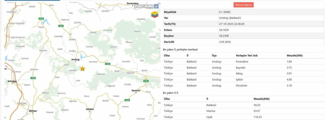 AFAD’ın açıkladığı verilere göre, depremin merkezi Balıkesir’in Sındırgı ilçesi olup, sarsıntı saat 22.48’de yaşandı. Aydın’da hissedilen bu güçlü depremin ardından birçok insan, evlerinde ve iş yerlerinde büyük bir panik yaşadı. Hemen dışarı fırlayan vatandaşlar, güvenli bölgelerde toplandı. bazıları ise sarsıntının ardından uzun bir süre açık alanda beklemeyi tercih etti. Özellikle apartmanların girişlerinde bir araya gelen insanlar, olası artçı sarsıntılara karşı tedirgin bir şekilde bekleyişlerini sürdürdü.