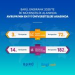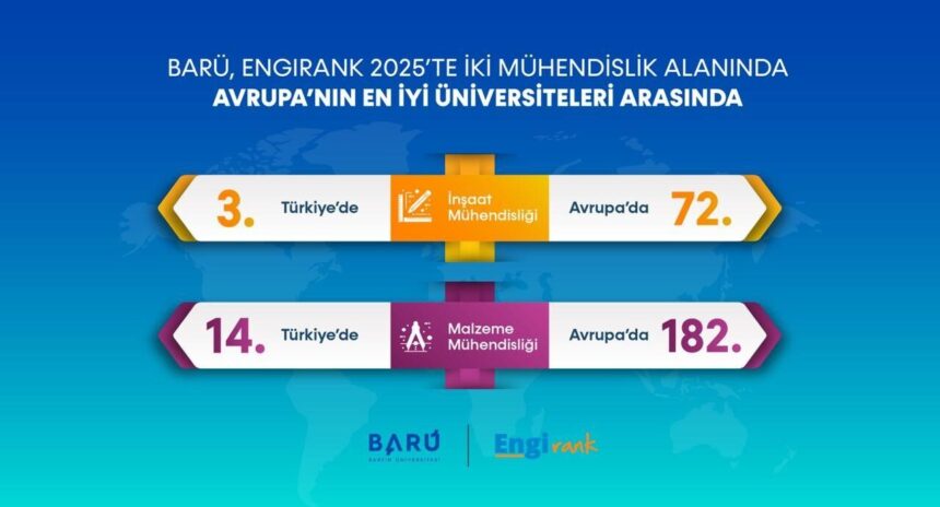 BARÜ, EngiRank 2025’te “Malzeme Mühendisliği” alanında da başarısını sürdürdü. Avrupa’da 240 üniversite arasında 182’nci olurken Türkiye’de 24 üniversite arasında 14’üncü sırada yer aldı. Böylece BARÜ, elde ettiği başarı ile mühendislik eğitimindeki kalitesini uluslararası platformda tescilledi.