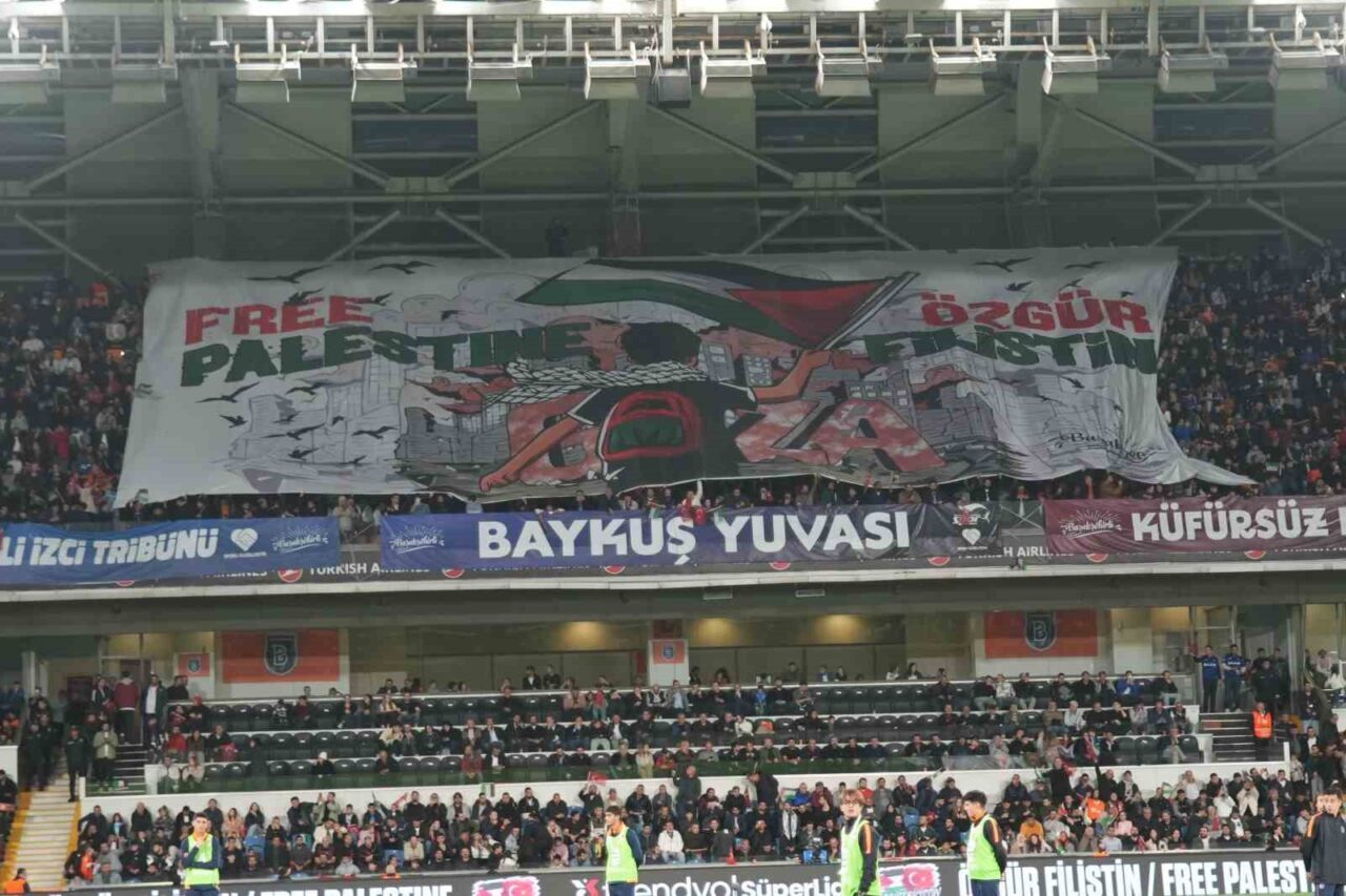 Maç öncesinde koruma altındaki tribünlerde, Başakşehir taraftarları İsrail’in Mescid-i Aksa ve Filistin halkına yönelik gerçekleştirdiği eylemleri kınamak amacıyla büyük pankartlar açtı. Turuncu-lacivertli taraftarlar, ‘Özgür Filistin’ mesajlarını taşıyan pankartlarla stadyum atmosferini doldurdu.