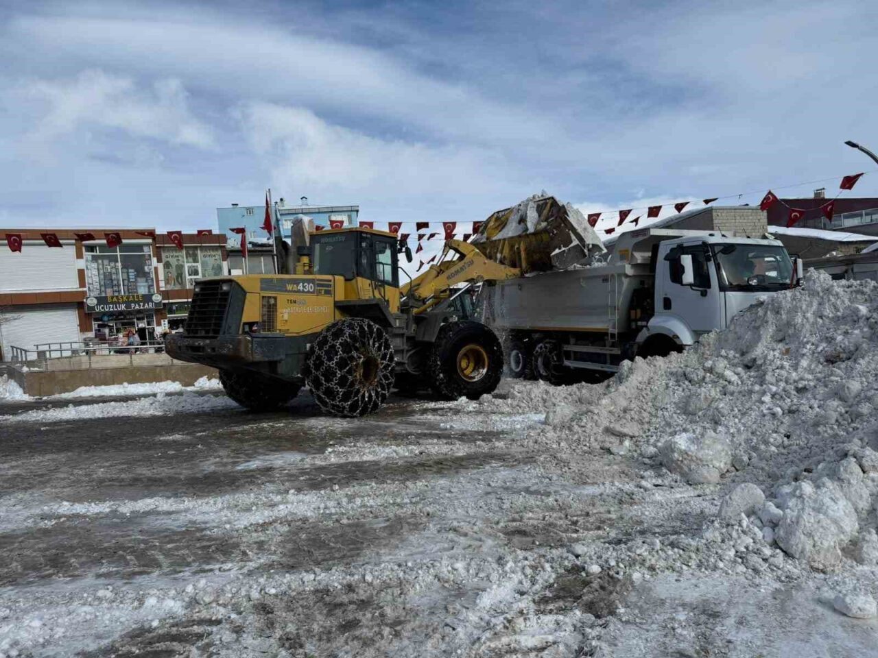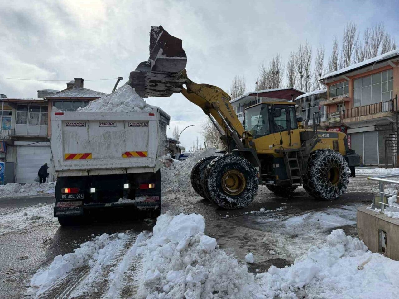 Başkale’de etkili olan yoğun kar yağışı, yaşamı olumsuz yönde etkiledi. Yağışın sona ermesinin ardından cadde ve sokaklarda biriken karların temizlenmesi için Başkale Belediyesi bünyesinde 14 araç ve 25 personelden oluşan ekip çalışmalarına başladı. İlçe merkezinde toplanan kar yığınları, kamyonlarla taşınırken; 1 loder, 1 greyder, 5 kazıcı yükleyici, 4 kamyon, 1 tuzlama ve küreme aracı ile 2 kamyonetle kar küreme ve tuzlama çalışmaları aralıksız sürdürülüyor.