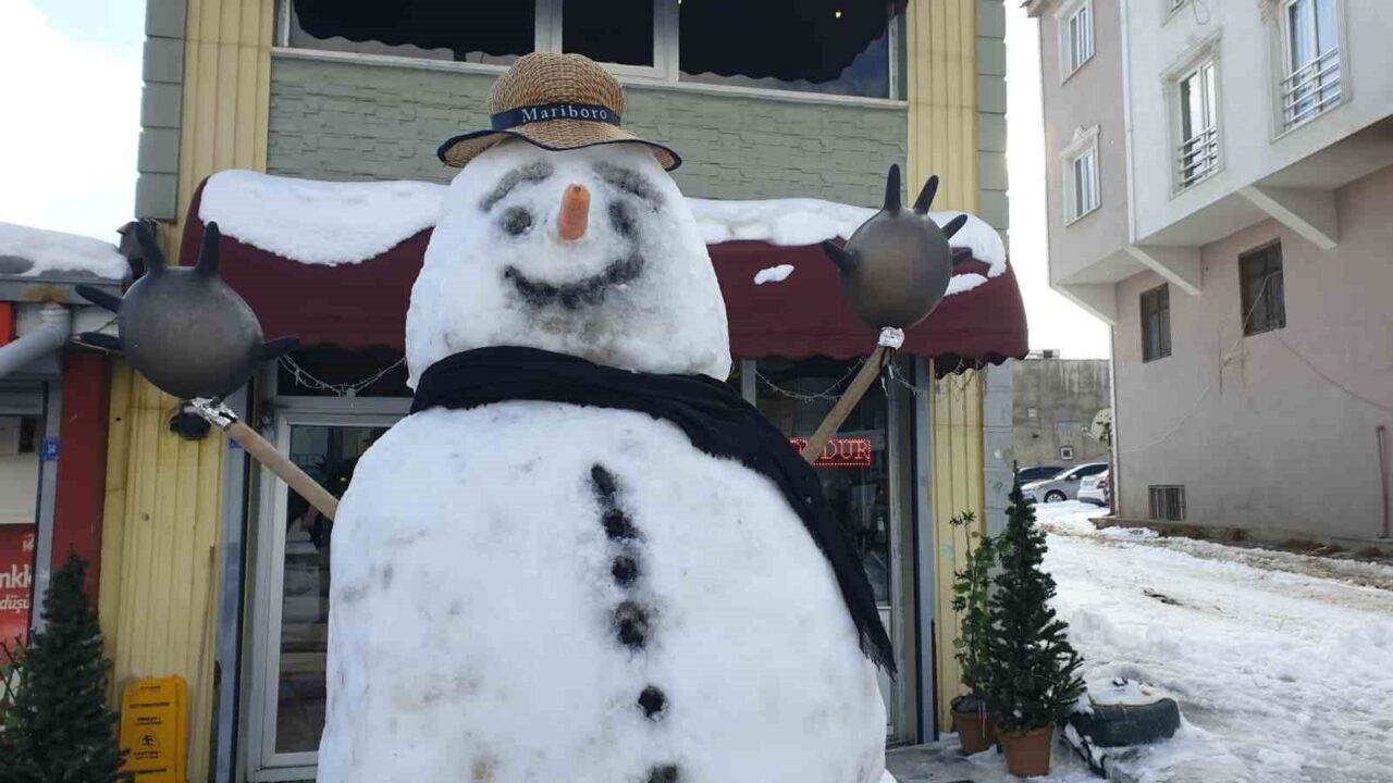 Pazar günü işletmelerini açan esnaf, karı eğlenceye dönüştürdü. Cadde ve sokaklarda biriken kar yığınlarından kardan adam yapan esnaf, vatandaşların ilgi odağı haline geldi. Kardan adamla fotoğraf çektiren vatandaşlar, bu anları ölümsüzleştirdi.