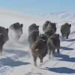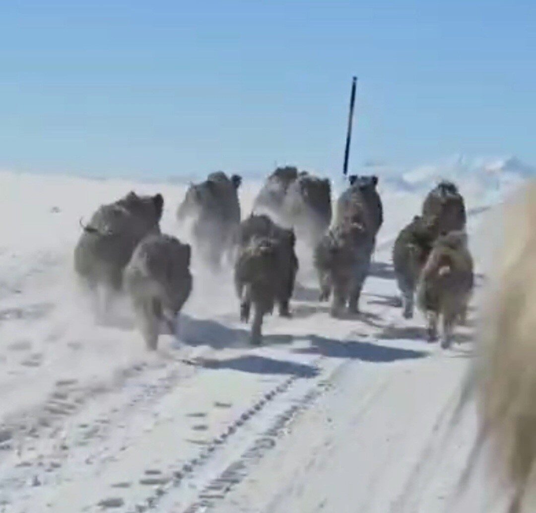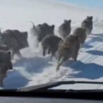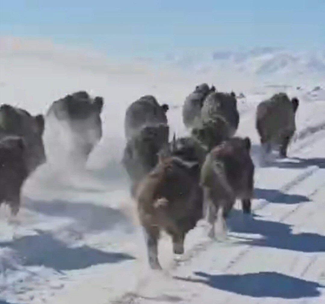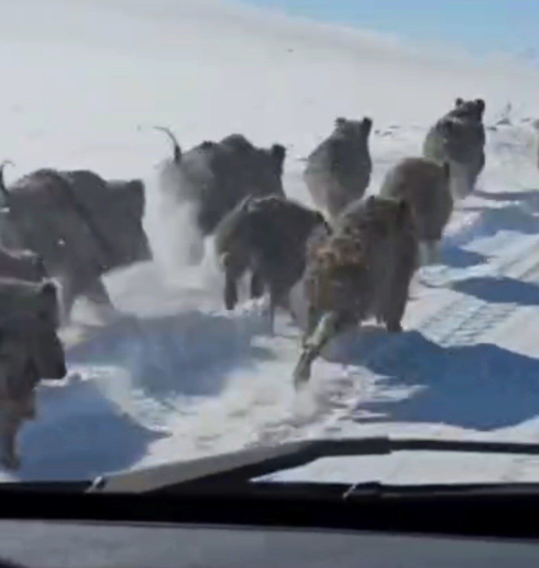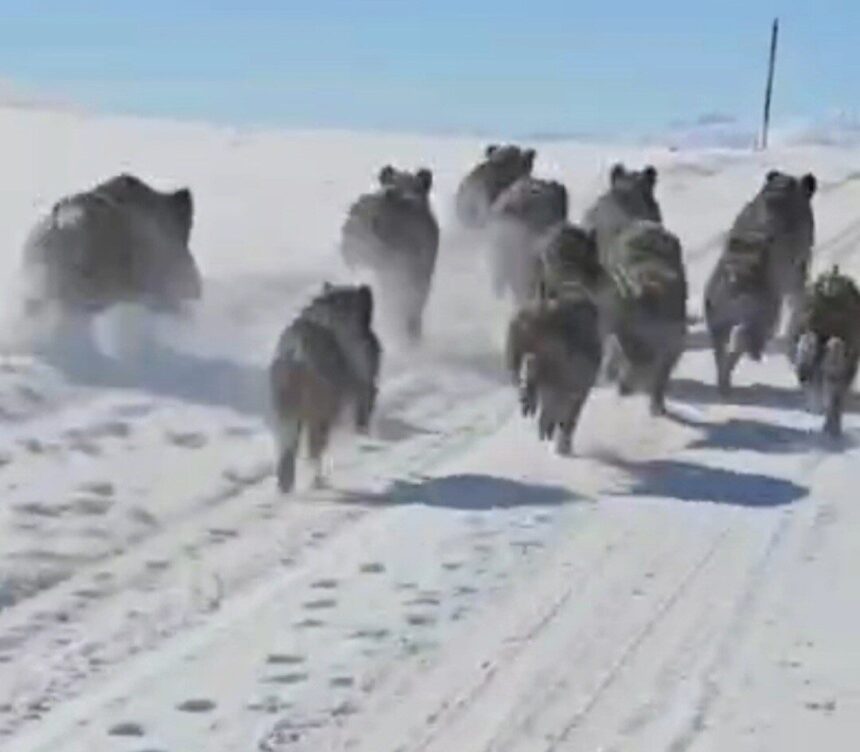 Van’ın Başkale ilçesinde, sürü halinde yerleşim alanlarına kadar inen yaban domuzları görüntülendi.