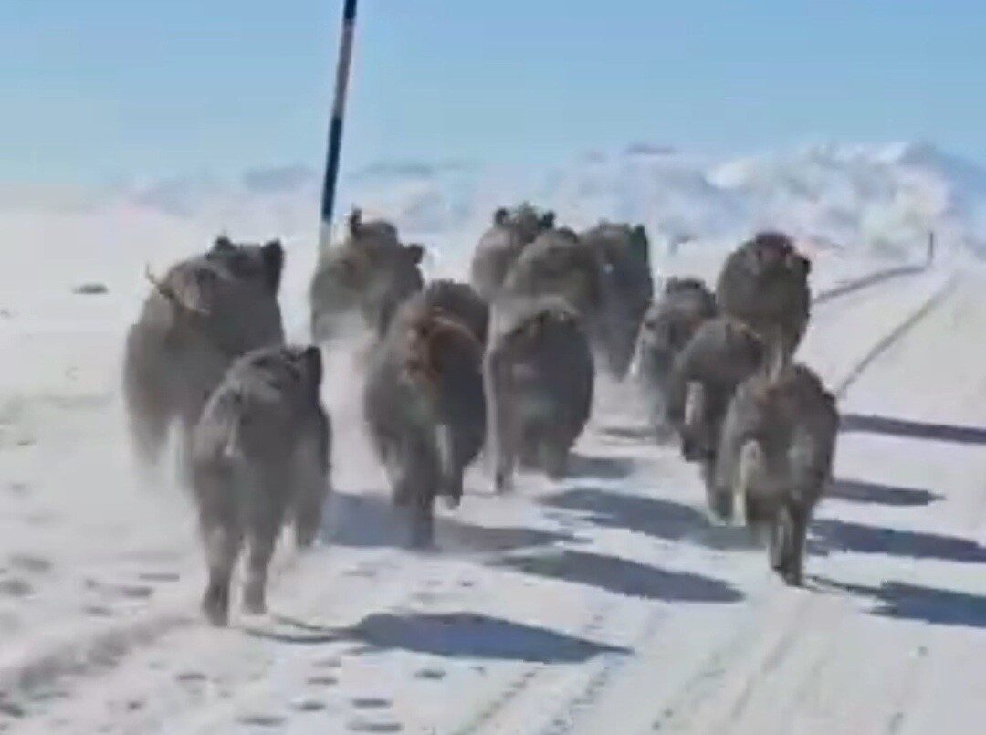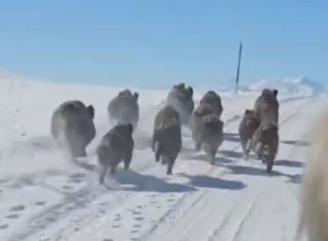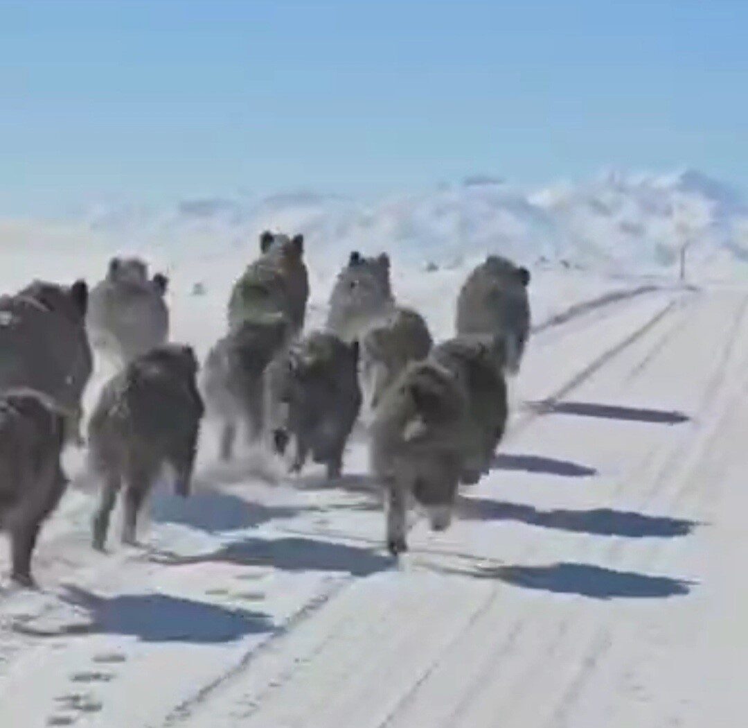 Van’ın Başkale ilçesinde, sürü halinde yerleşim alanlarına kadar inen yaban domuzları görüntülendi.