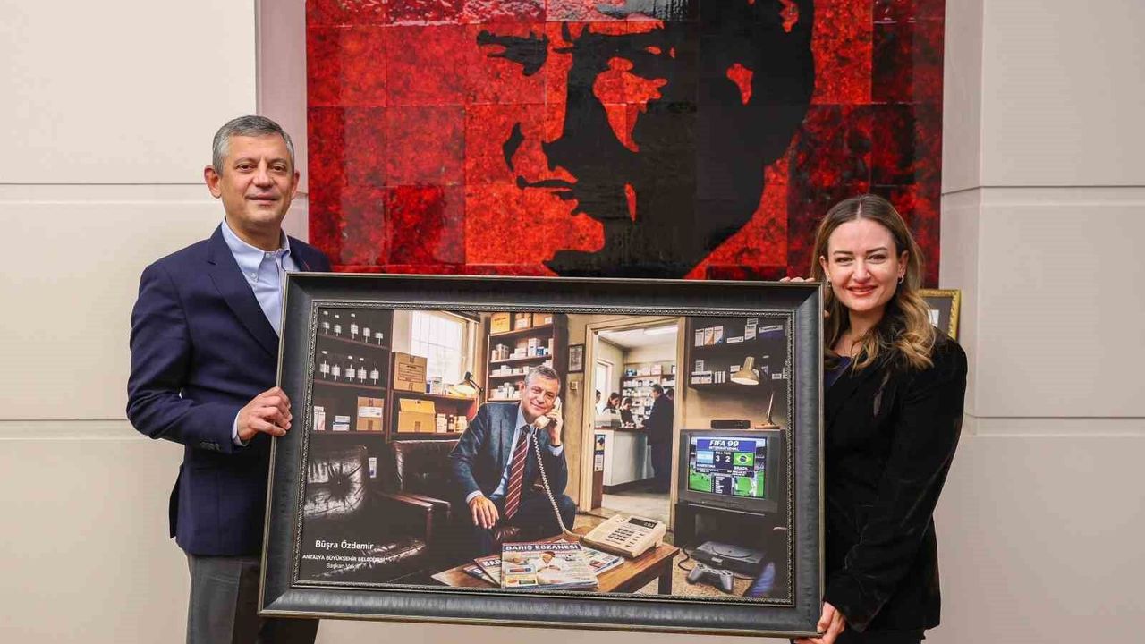 Antalya Büyükşehir Belediyesi Başkan Vekili Büşra Özdemir, Cumhuriyet Halk Partisi (CHP) Genel Başkanı Özgür Özel'i makamında ağırladı. Ziyaret sırasında, Özdemir, Antalya'ya kazandırılan hizmetler ve devam eden projeler hakkında bilgi paylaşımında bulundu. Ayrıca, Muhittin Böcek'in katkılarına da dikkat çekti. Ziyaretin anısına, Başkan Vekili Özdemir, Özgür Özel'e, siyasi kariyerinin başlangıcını ve eczacılık dönemini simgeleyen bir tablo hediye etti. Bu tablo ile ilgili olarak, ‘Çünkü; o gün yarım kalan maç ile başlayan hikâye, bugün milletin iradesiyle tamamlanmaya devam ediyor.' mesajını iletti.
