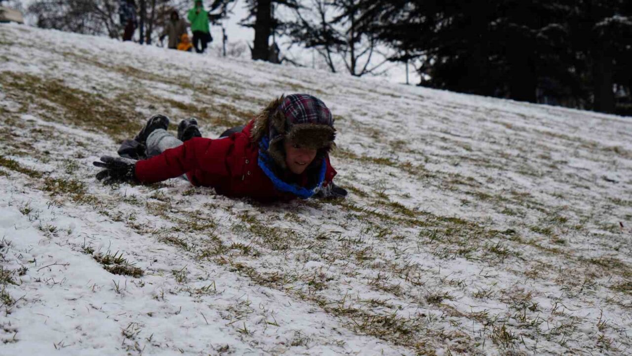 Yılbaşı tatilini fırsata dönüştüren vatandaşlar, karın keyfini çıkarmak için parklara akın etti.