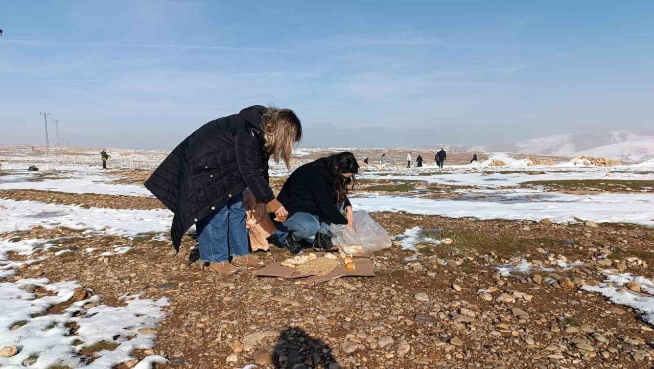 Batman’da sivil toplum kuruluşu temsilcilerinin katılımıyla yaban hayvanları için doğaya yem bırakıldı.