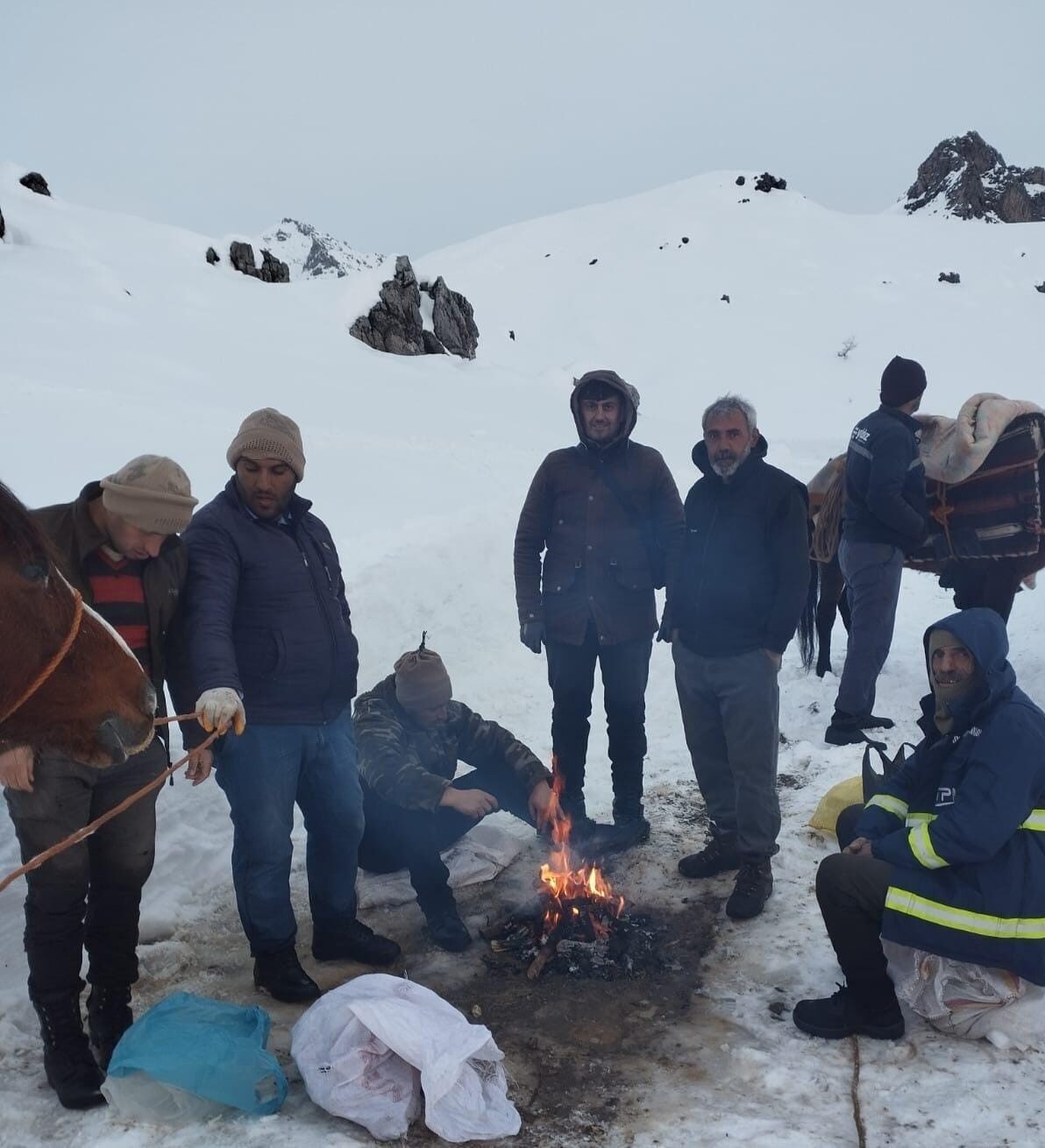 Edinilen bilgilere göre, sahipsiz olduğu belirtilen 6 katır, yaklaşık 10 gün önce etkili olan yoğun kar yağışı nedeniyle 3 bin rakımlı Mereto Dağı eteklerinde mahsur kaldı. Bulundukları bölgenin yaklaşık bir metre karla kaplanması nedeniyle ilerleyemeyen katırlar, dağlık alanda zor durumda kaldı.