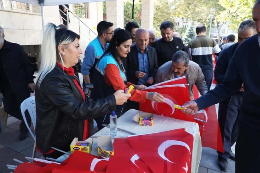 Battalgazi Belediye Başkanı Bayram Taşkın, 29 Ekim Cumhuriyet Bayramı vesilesiyle esnaf ve vatandaşlara Türk bayrağı dağıtarak milli birlik ve beraberlik mesajı verdi.