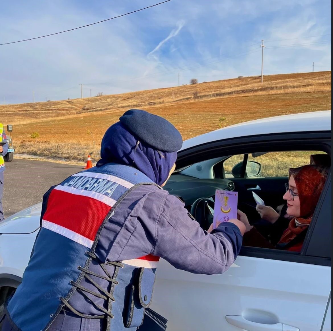 Bayburt İl Jandarma Komutanlığı, İl Emniyet Müdürlüğü ve Aile Sosyal Hizmetler İl Müdürlüğü, Kadına Yönelik Şiddetle Uluslararası Mücadele Günü dolayısıyla sürücülere yönelik bilgilendirme etkinliği düzenledi.