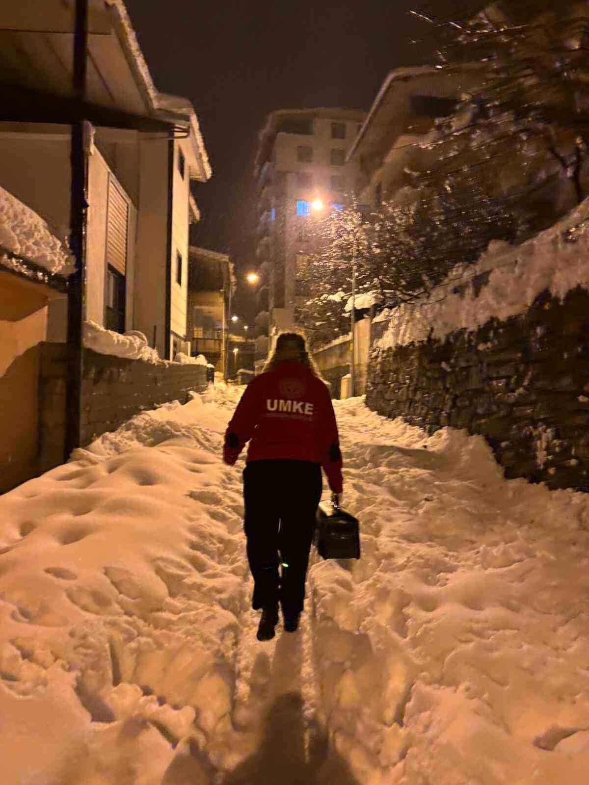 Kent genelinde etkili olan kar yağışı, günlük yaşamı olumsuz yönde etkiledi. UMKE ekipleri, merkez ve kırsal alandaki hastalara ulaşarak gereken müdahaleleri gerçekleştirdi. UMKE ekibi, doğum sancısı bulunan bir kadına ve diyaliz hastası bir vakaya müdahalede bulundu ve ardından hastaların hastaneye sevkini sağladı.