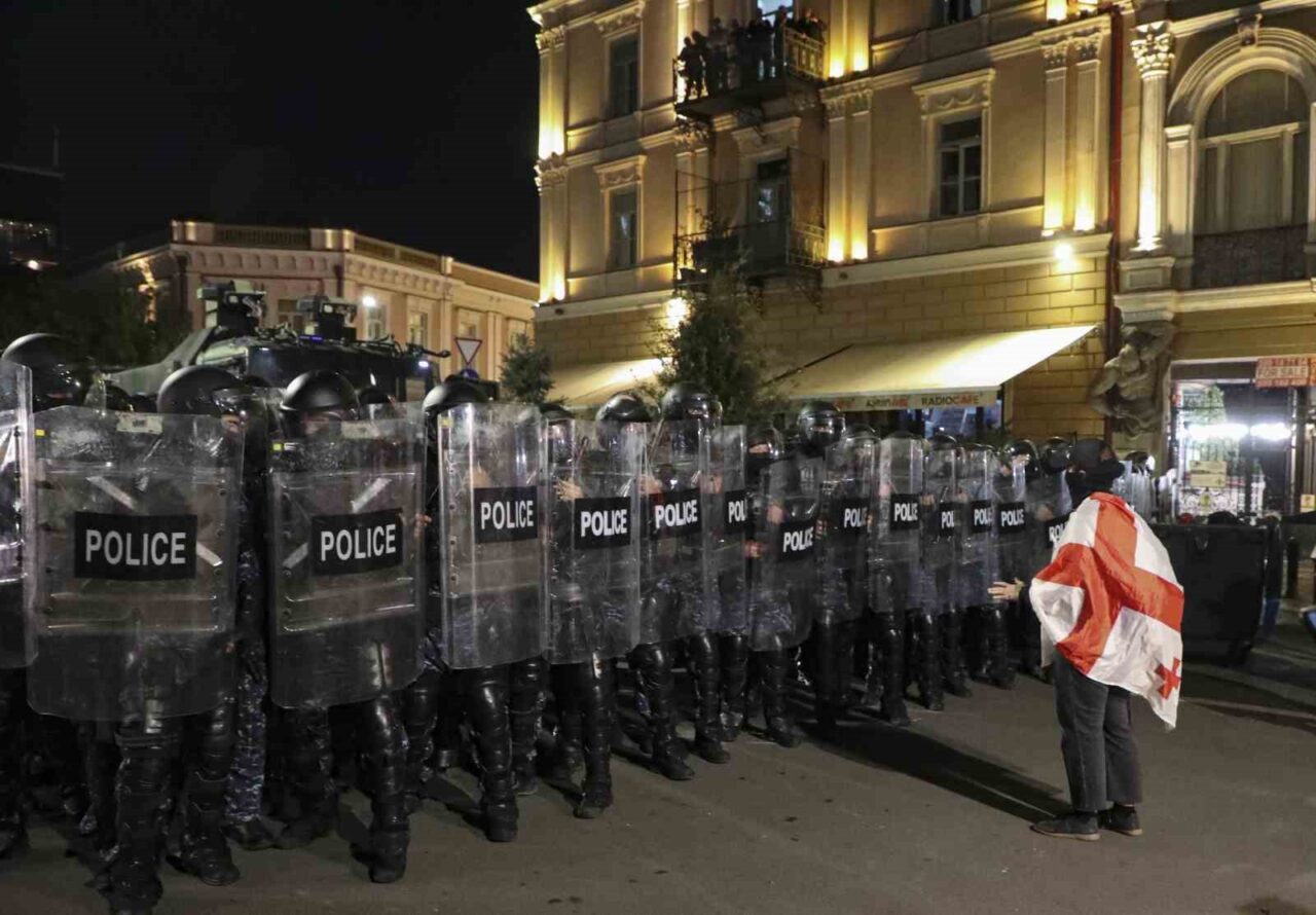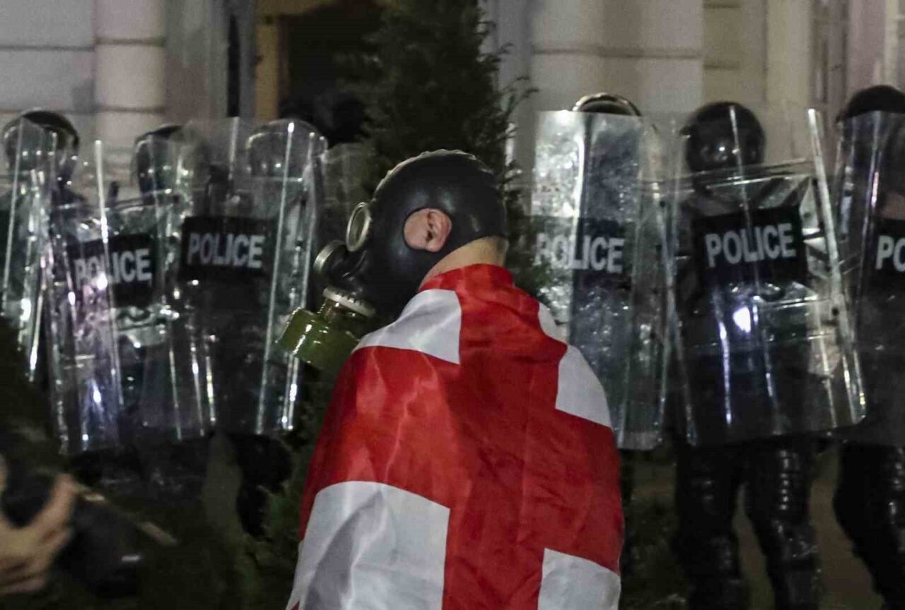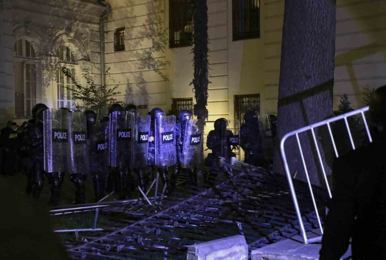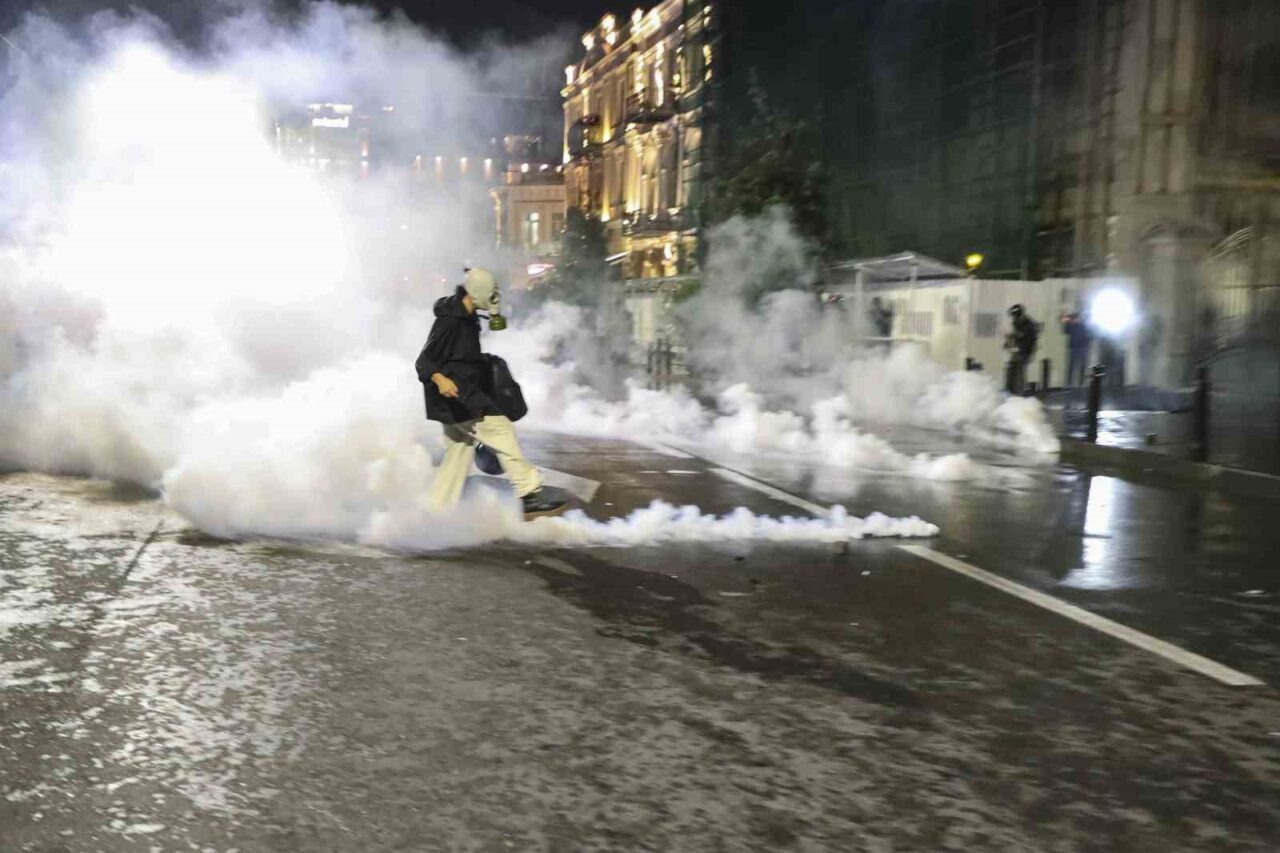 TİFLİS (İHA) – BUGÜN YEREL SEÇİMLERİN GERÇEKLEŞTİRİLDİĞİ GÜRCİSTAN’DA HÜKÜMET KARŞITI ON BİNLERCE PROTESTOCU SOKAKLARI DOLDURURKEN, POLİS CUMHURBAŞKANLIĞI SARAYI YERLEŞKESİNE GİRMEYE ÇALIŞAN GÖSTERİCİLERE BİBER GAZI İLE MÜDAHALE ETTİ.