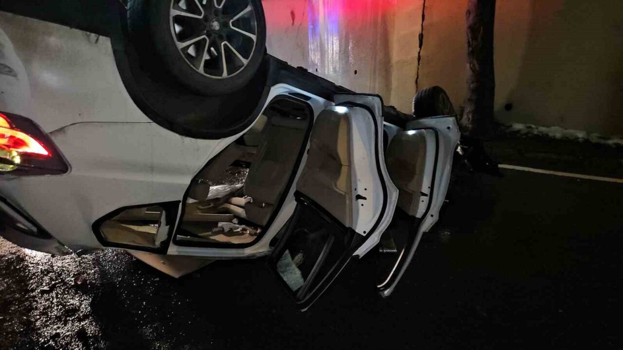 Beşiktaş’ta alkollü sürücü 2 araca çarpıp bir ağacı sökerek takla attı, 2 kişi hastaneye kaldırıldı.