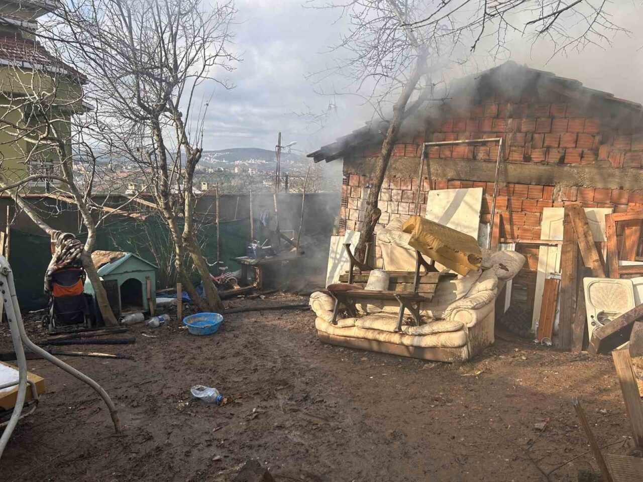 İstanbul’un Beykoz ilçesinde bir gecekondunun odunluk kısmında yangın
