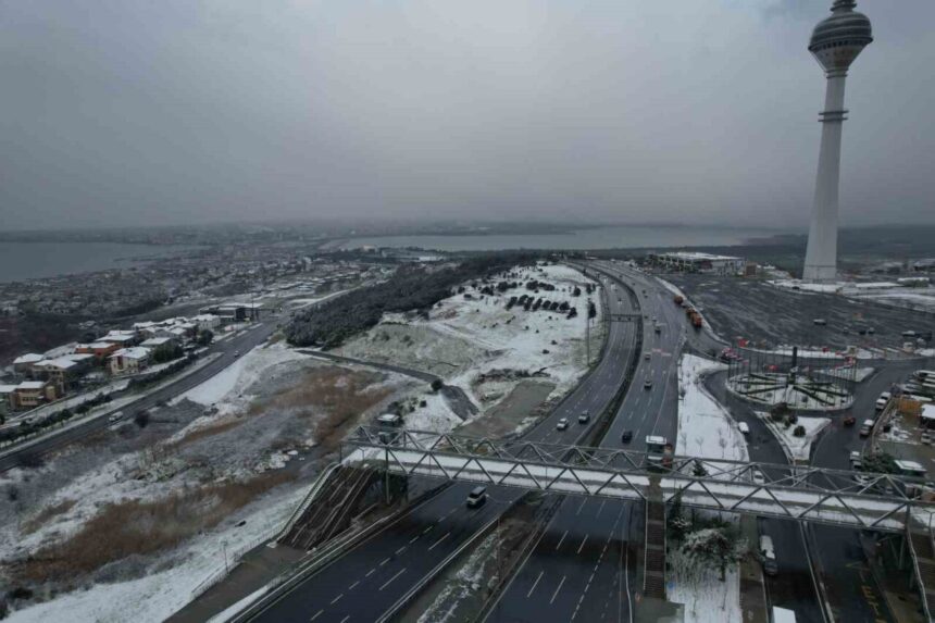 İstanbul Beylikdüzü’nde karla kaplanan alanlar havadan görüntülendi