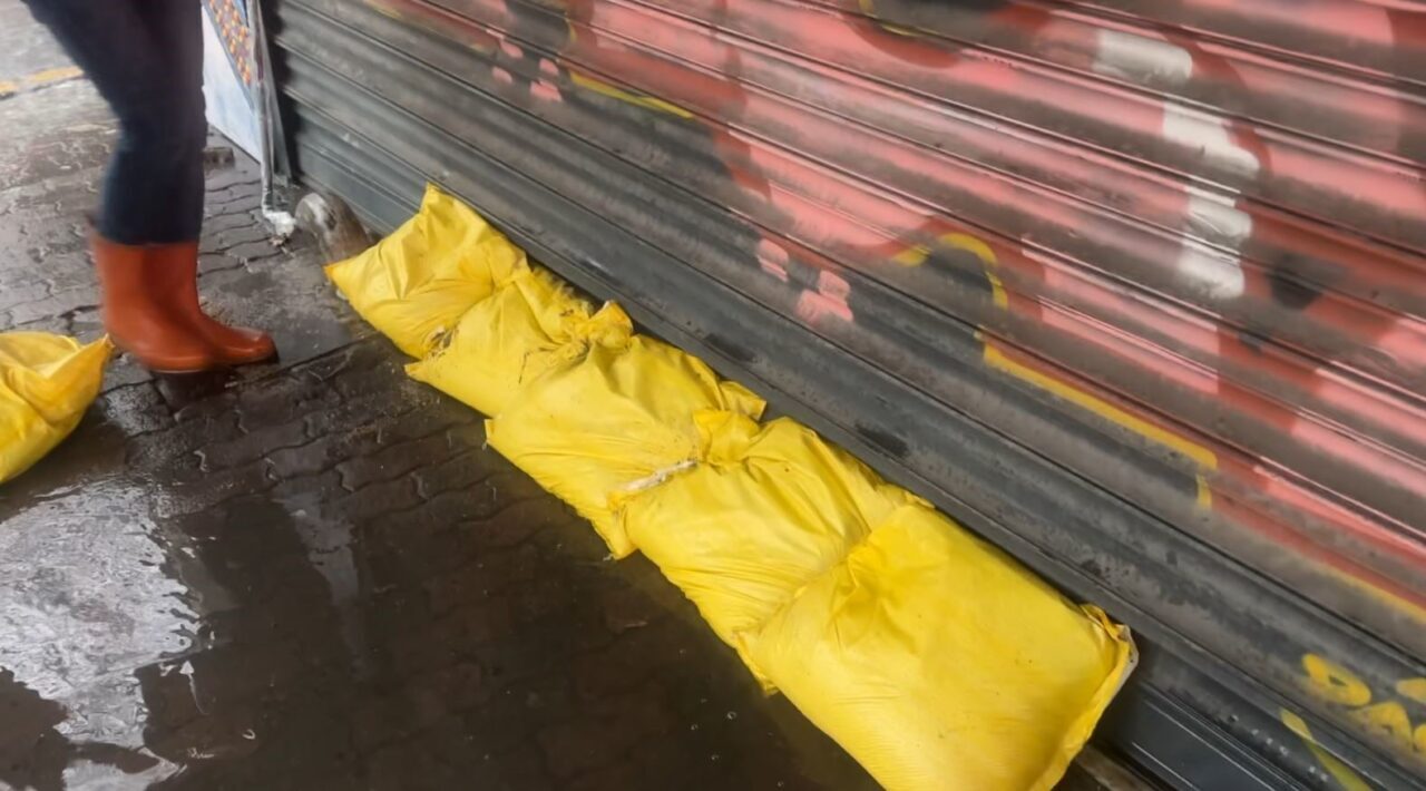 Esnaf kum torbalarıyla önlem aldı, bir kişi rögar kapağını açtı